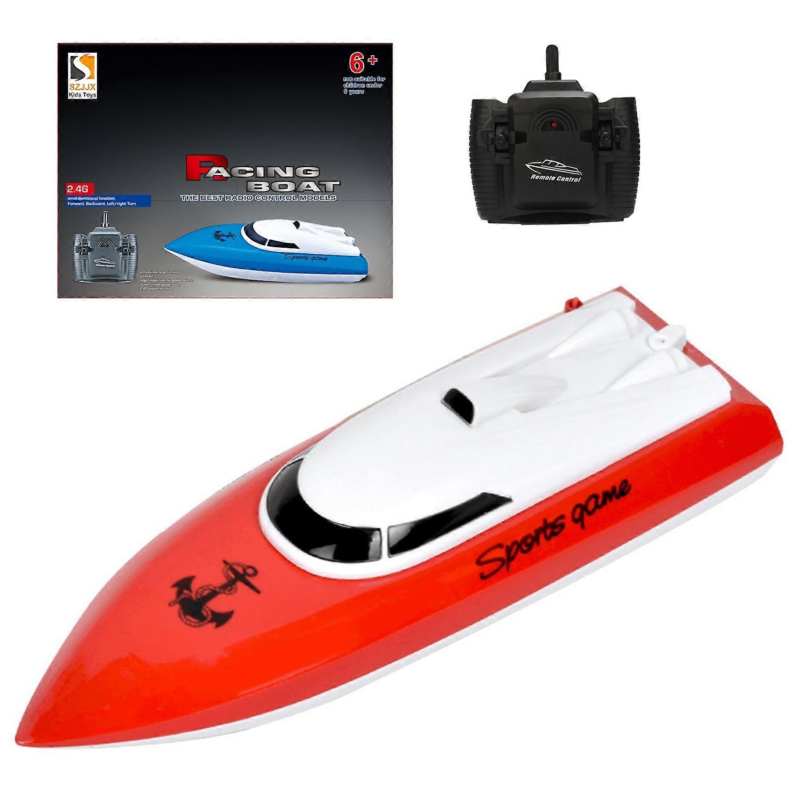 speed 2.4 GHz mini electric RC racing boat in orange, designed for outdoor water play on lakes, pools, and ponds. Compact and easy to transport, this remote control boat uses 2.4 GHz radio control for responsive handling and reduced interference, and includes a rechargeable battery for repeated play. Key benefits Ready for outdoor water play: Designed specifically for use on lake, pool, and pond, so you can take it to family outings, neighborhood pools, or weekend pond races. Stable, responsive control: 2.4 GHz radio frequency provides more reliable signal and allows multiple boats to run at the same time without interference. Fast, fun performance: speed design delivers an engaging racing experience for children and hobbyists. Compact and portable: Mini size makes the boat easy to carry and store for quick setup and play. Rechargeable power: Includes a rechargeable battery to avoid repeated spending on disposable cells and to keep playtime going. Main features Control system: 2.4 GHz remote control for responsive steering and throttle control. Power: Electric drive with rechargeable battery included. Use cases: Suitable for lakes, pools, and ponds. Design: Mini sized racing boat in orange, intended as a water play toy or gift for boys and girls. Practical scenarios Family pool day: Bring the boat to a backyard pool for supervised water play that keeps kids engaged while adults watch nearby. Friendly races at the pond: Run head to head with friends using 2.4 GHz control so multiple boats can race without signal conflict. Outdoor exploration at a lake: Use the compact boat to add an active, hands on element to a lakeside outing. What to expect The product offers straightforward remote control operation, a rechargeable power source for repeated use, and a compact form factor suited to recreational water environments. It is intended as an outdoor electric RC racing toy for casual play and racing on lakes, pools, and ponds. Note: Follow local safety guidance and supervise children during water play.