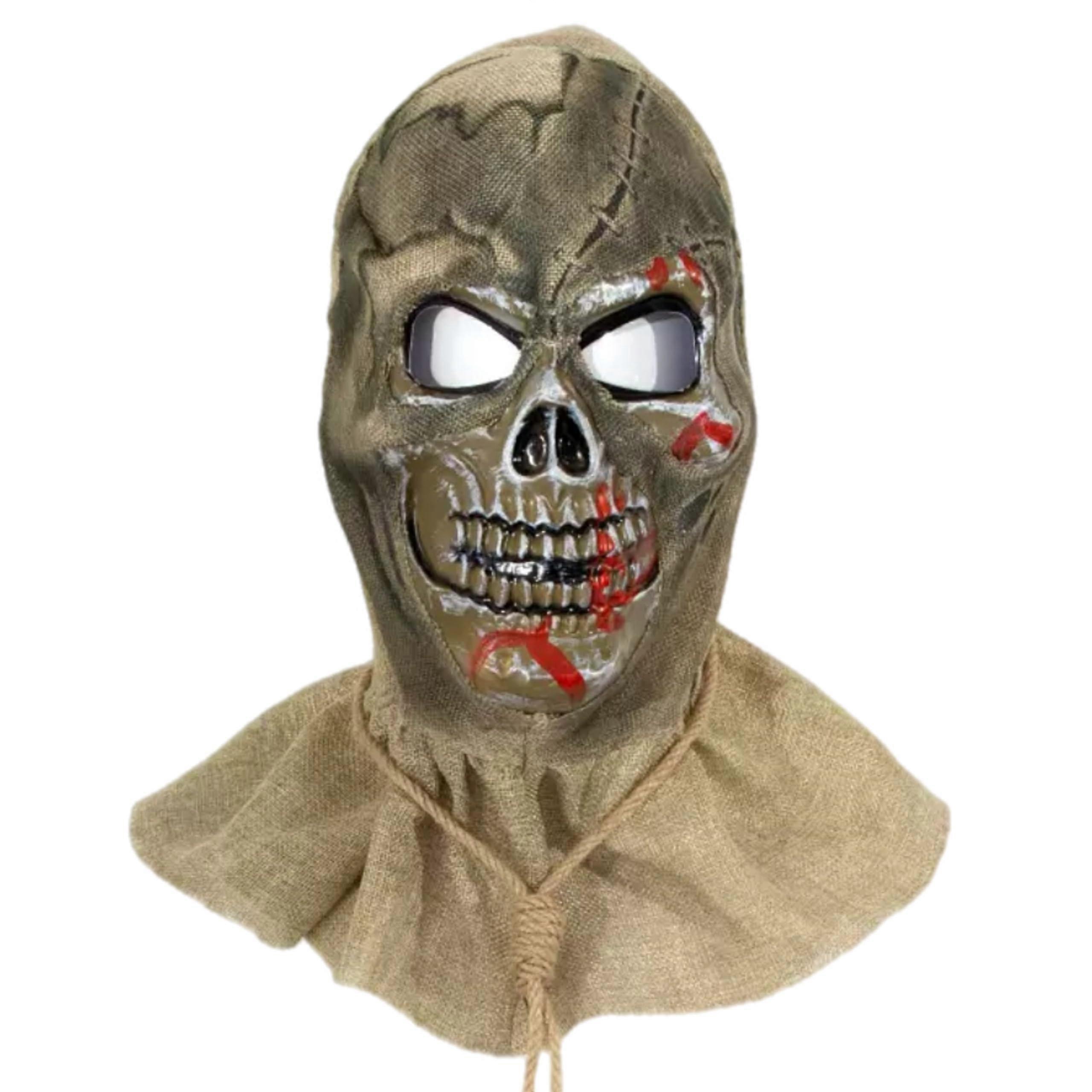 Halloween Scarecrow Mask with Blood Skull Design Burlap Sack Horror Style OneSize Fit for Adults