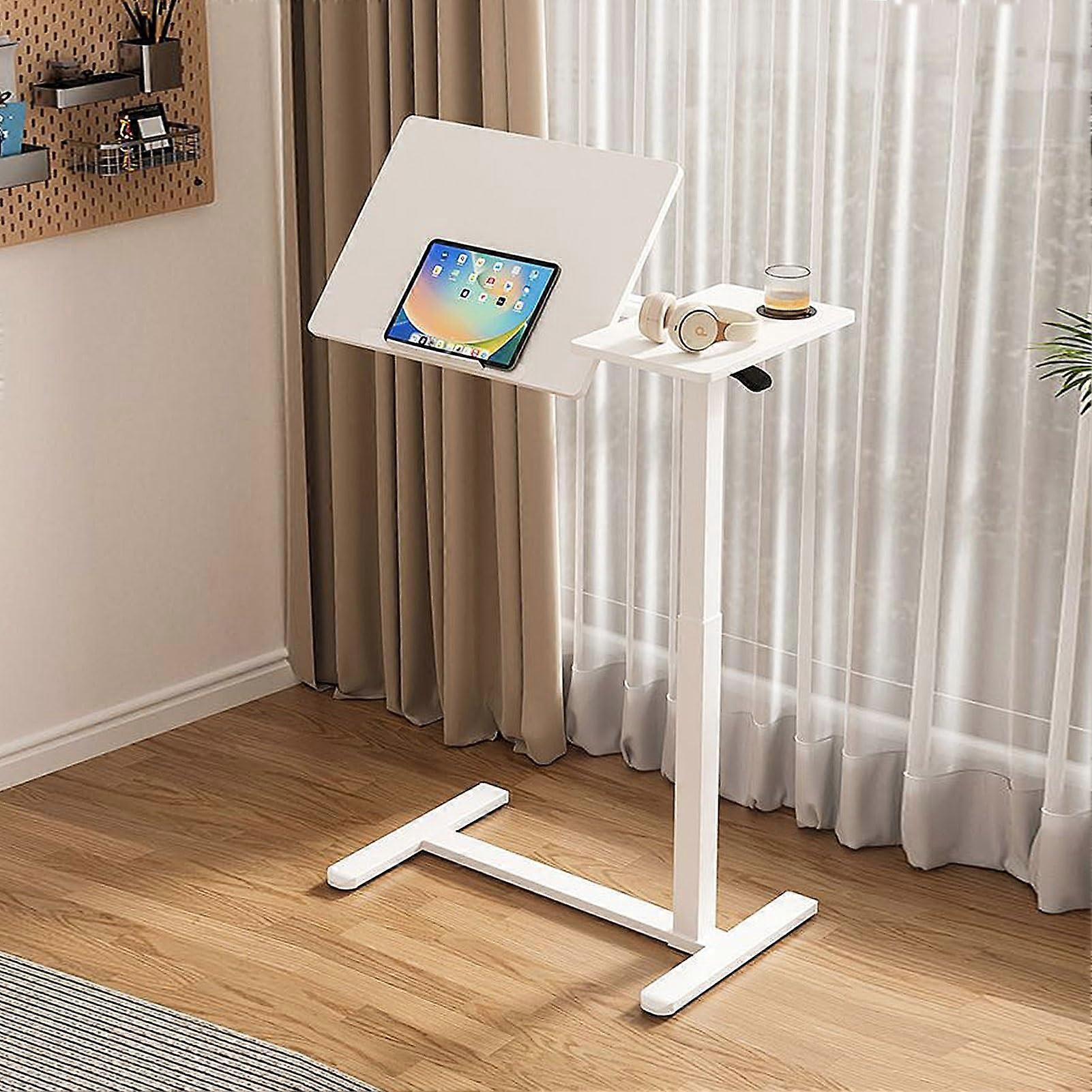 Height Adjustable Laptop Desk with Lockable Tilt , Rolling Over Bed Table with Hidden Wheels, White