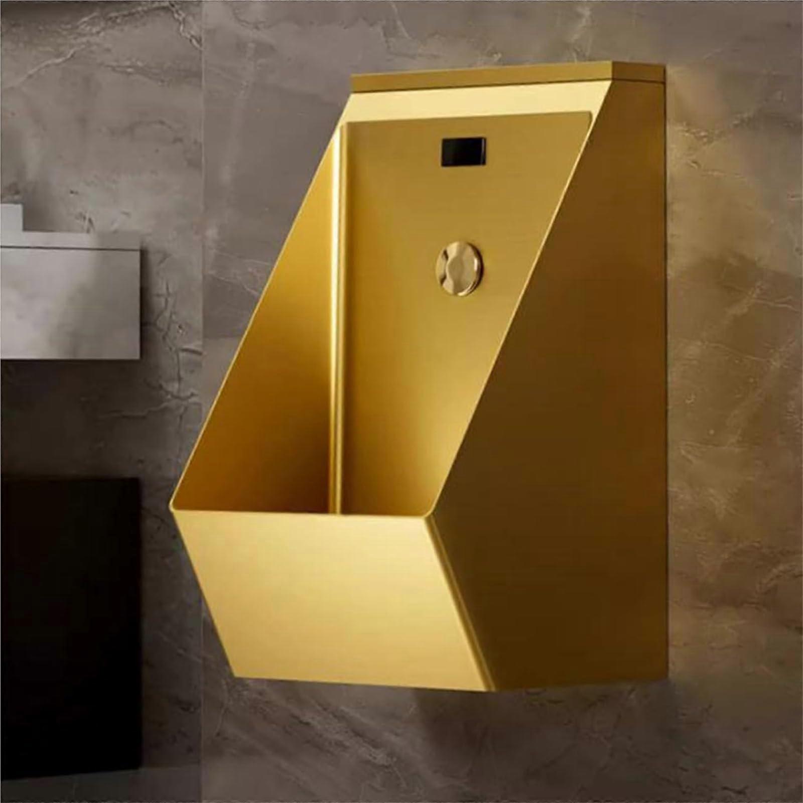 Gold Stainless Steel Wall Mounted Urinal with Smart Sensor Flush, AntiOdor Design for Men