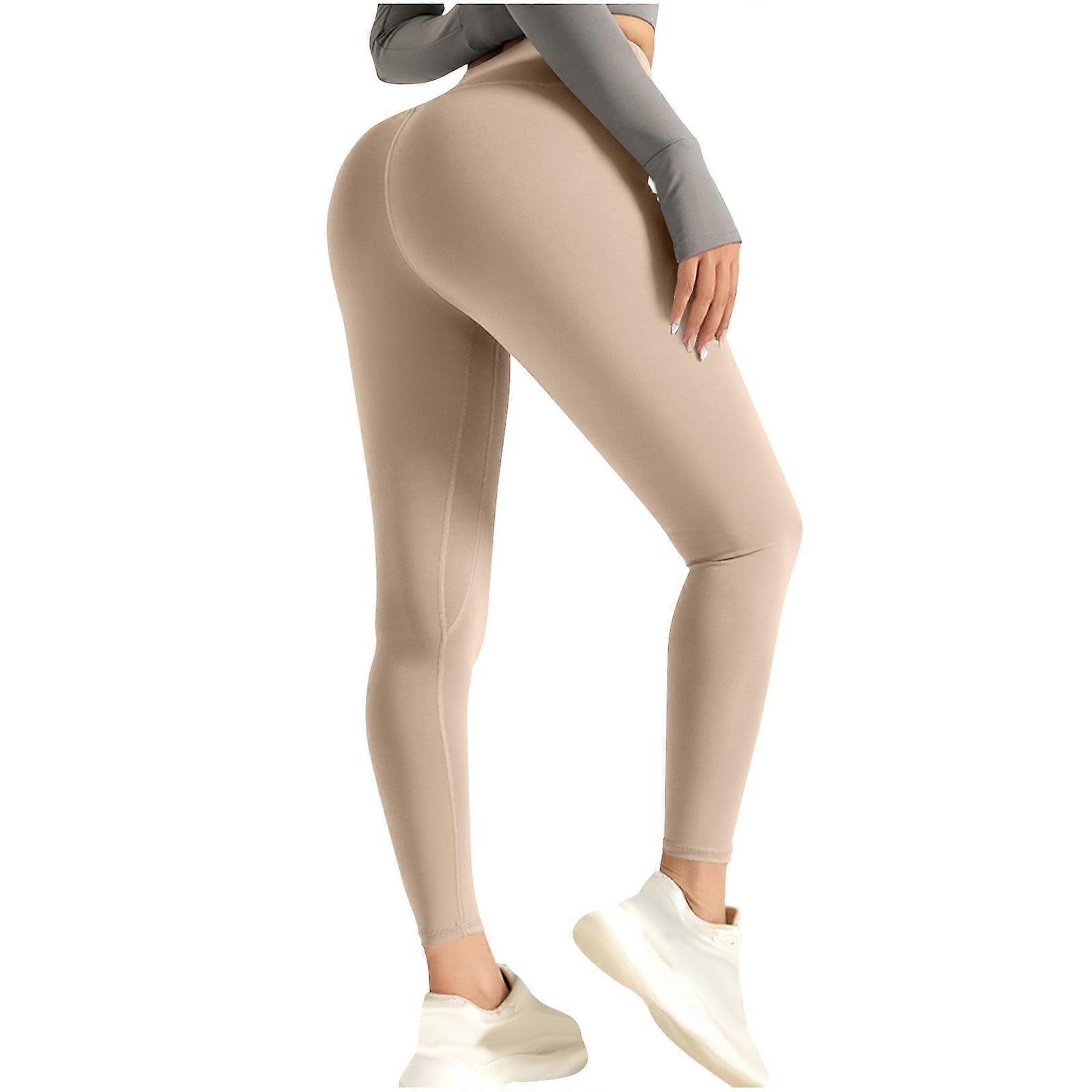 Zpanxa Leggings for Women High Waisted Yoga Pants Butt Lift Fitness Stretchy Workout Leggings Solid Color Long Athletic Running Pants Khaki B XXL