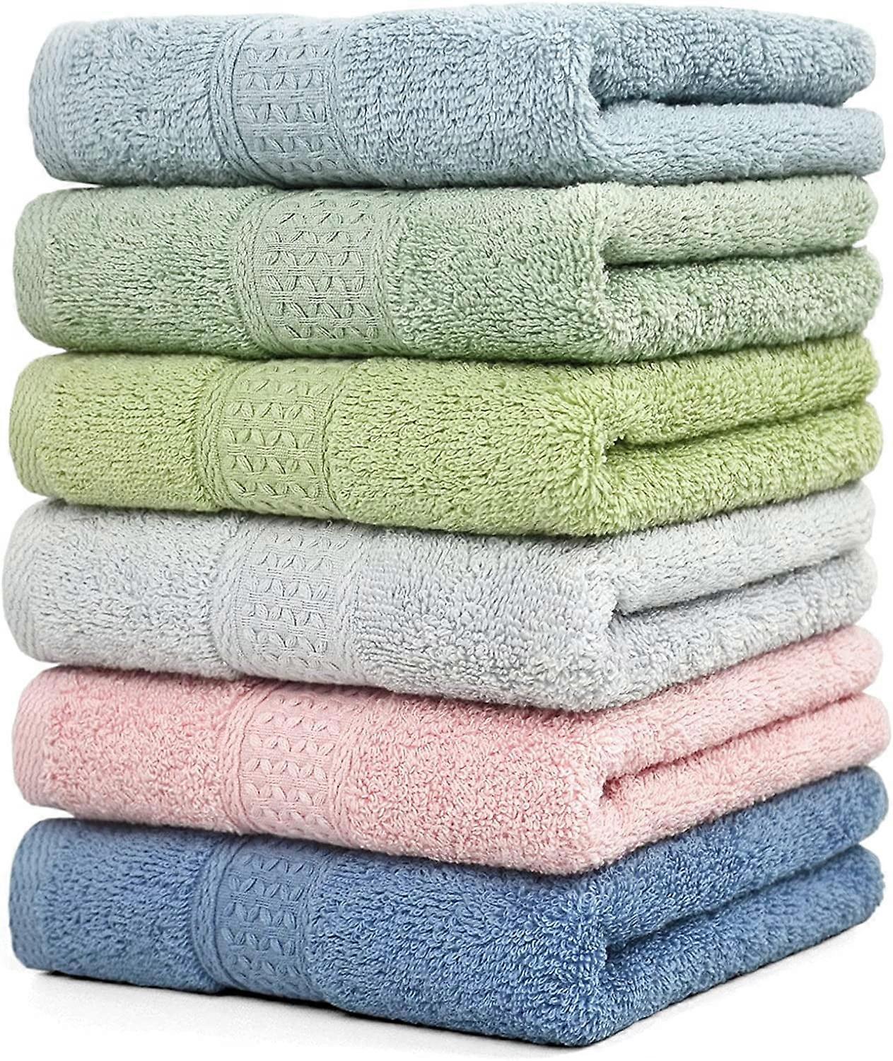 Cotton Hand Towel Set 6-Pack Ultra Soft Hand Towels with Assorted Colors (29*13 Inches) Lightweight and Quick Dry Bathroom Towels