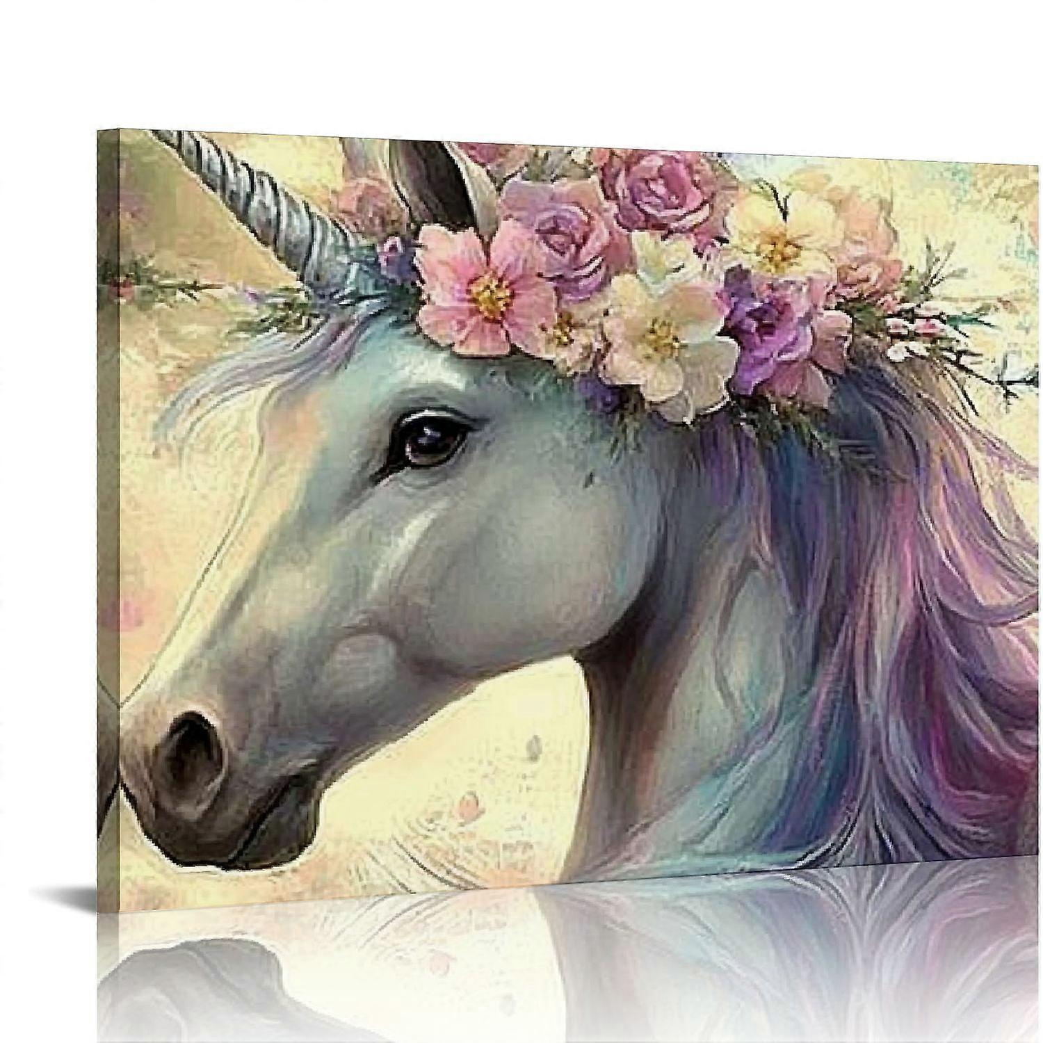 Pastel Unicorn Wall Art Canvas Print, 16x12in – Nursery, Girls' Bedroom & Playroom Decor – Compatible with Unicorn Themes