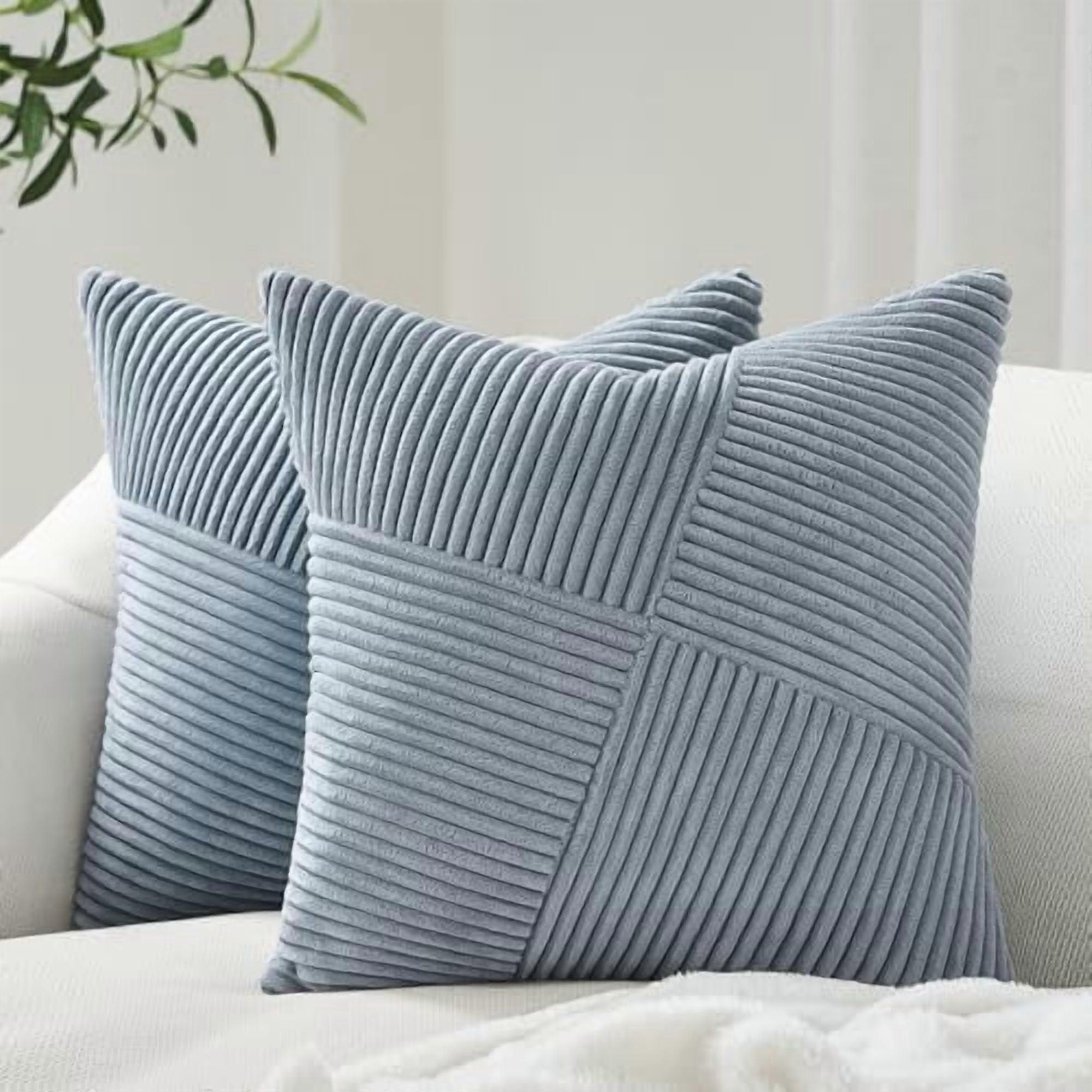 22x22" Dusty Blue Euro Pillow Shams (2 pcs), Corduroy, Windmill Textured Striped Patchwork, 55x55 cm, for Bedroom & Living Room