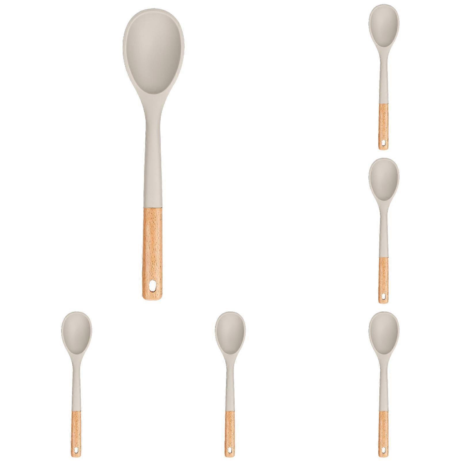 Large Silicone Cooking Spoon, Nonstick Solid Wooden Handle, Heat-Resistant, 13.2" – Compatible with All Cookware