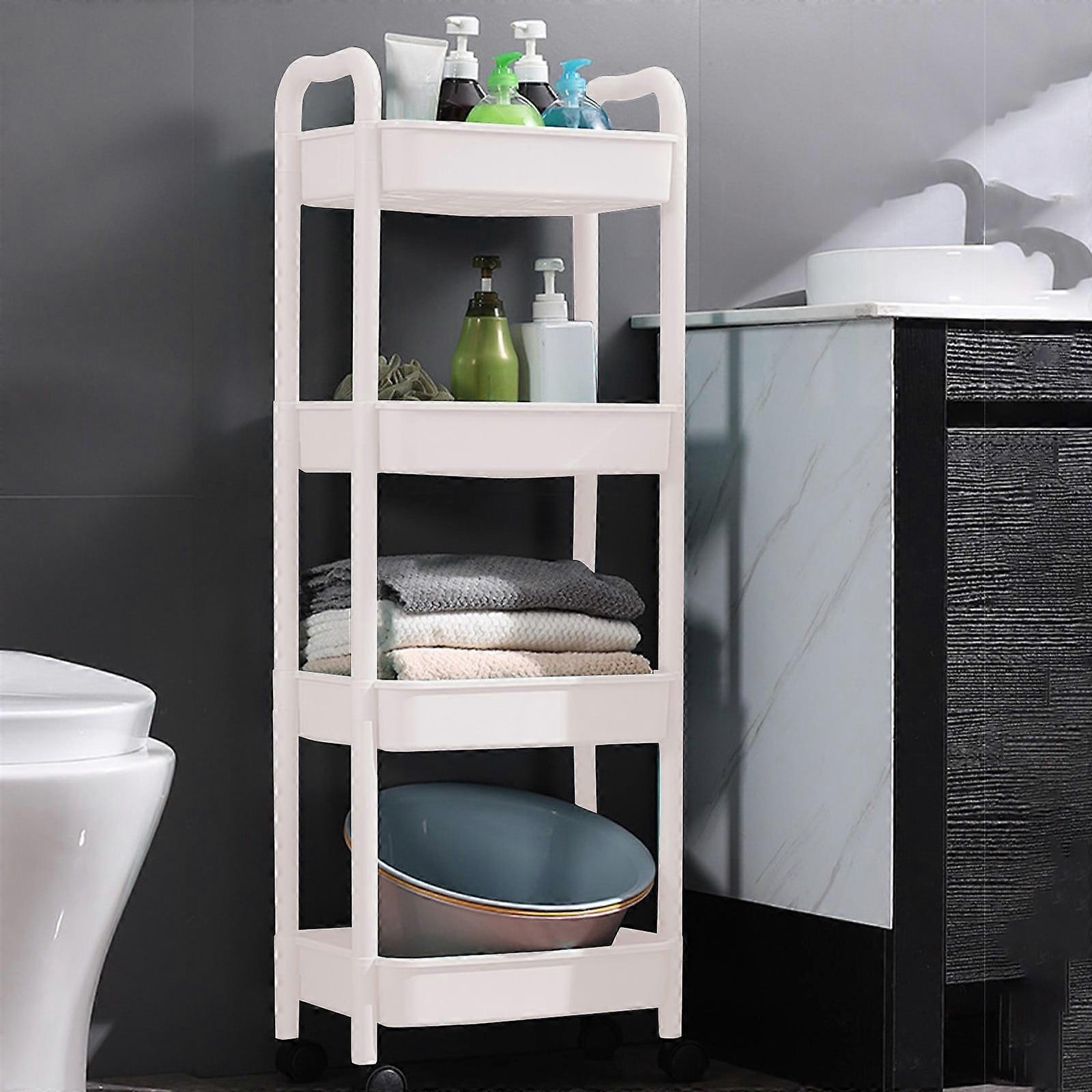 4-Tier Slim Rolling Storage Cart, Mobile Shelving Unit for Kitchen, Bathroom, Makeup, Craft, Laundry – White, Compatible with Narrow Spaces