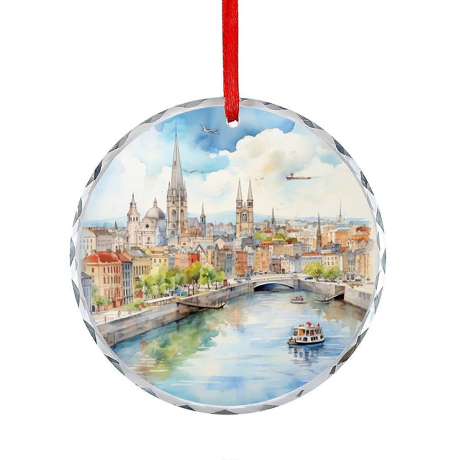 Dublin City Map In Watercolor Glass Christmas Ornament for Xmas Tree City Travel Souvenir Glass Round Christmas Ornament