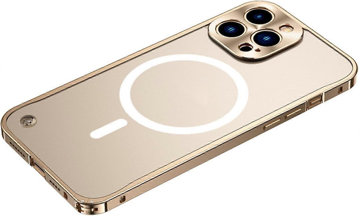 Metal Aluminum Magnetic Case for iPhone 13 Pro, Magsafe Compatible, Frosted Clear Back, Metal Lens Protection