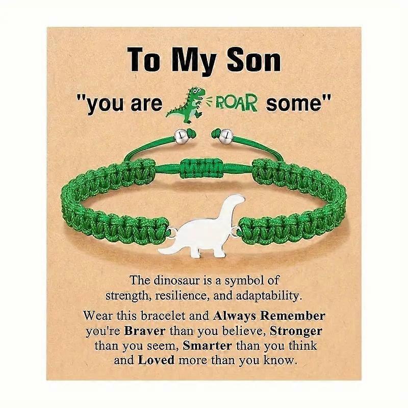 Adjustable Dinosaur Beaded Bracelet with "You're Braver" Text – Boy's Birthday/Christmas Gift, Compatible with Kids