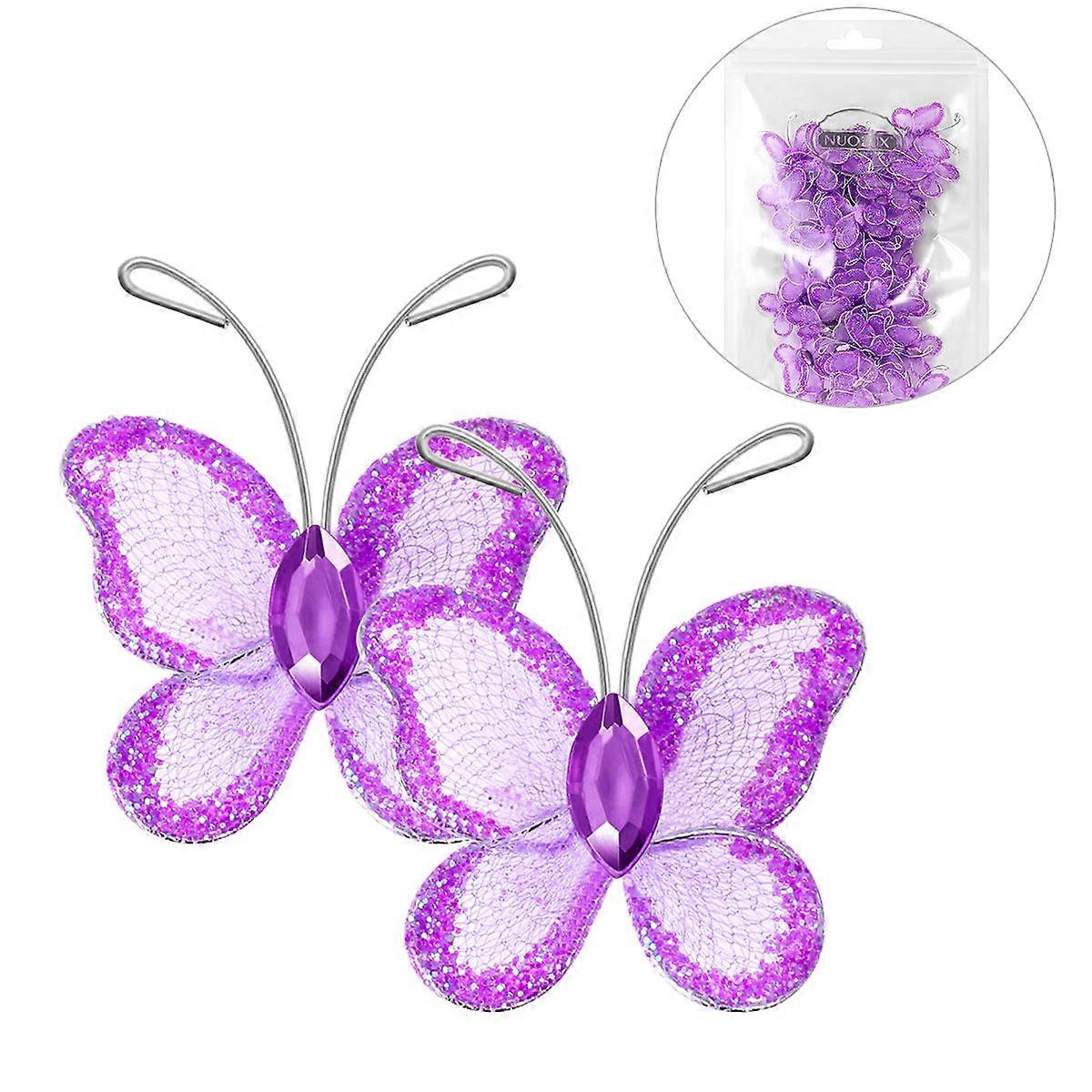 Nuolux Purple Rhinestones Decorative Butterfly for Wedding Craft 50Pcs Set