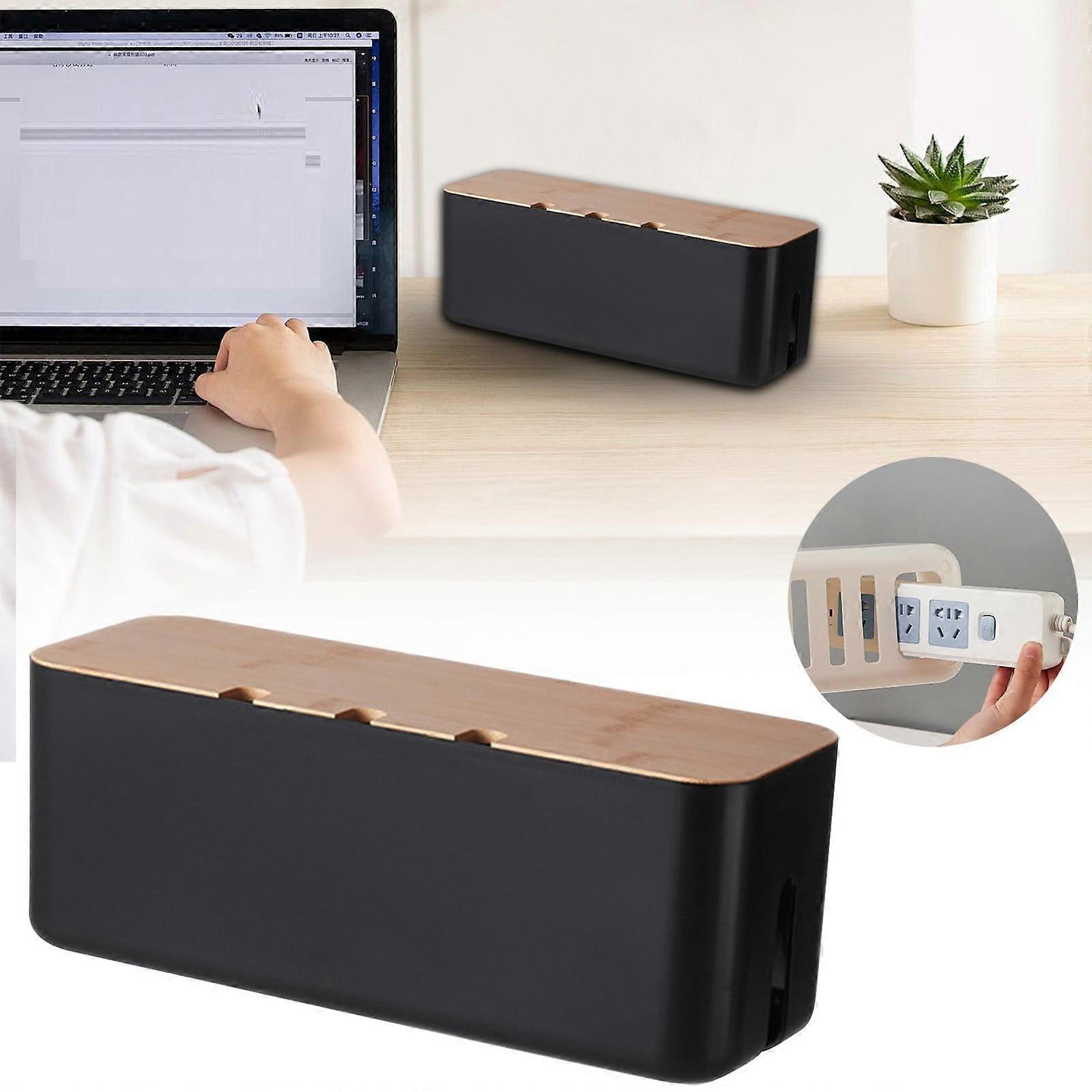 Black Cable Management Box with Wood Lid, 11.8×4.3 in Cord Organizer for Desk/TV/Computer, USB Hub Cover, Compatible with Standard Power Strips