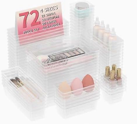 72-Pcs Clear Plastic Drawer Organizer Set (4 Sizes), Non-Slip Trays for Makeup, Jewelry, Office, Kitchen—Compatible with Standard Drawers