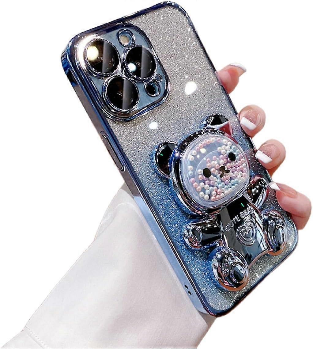 Gradient Glitter Bead Bear Phone Case with Hidden Stand – Silicone, Cute Cartoon Style, compatible with iPhone 14/13/12/11 Pro Max Plus XS XR 7 8 SE
