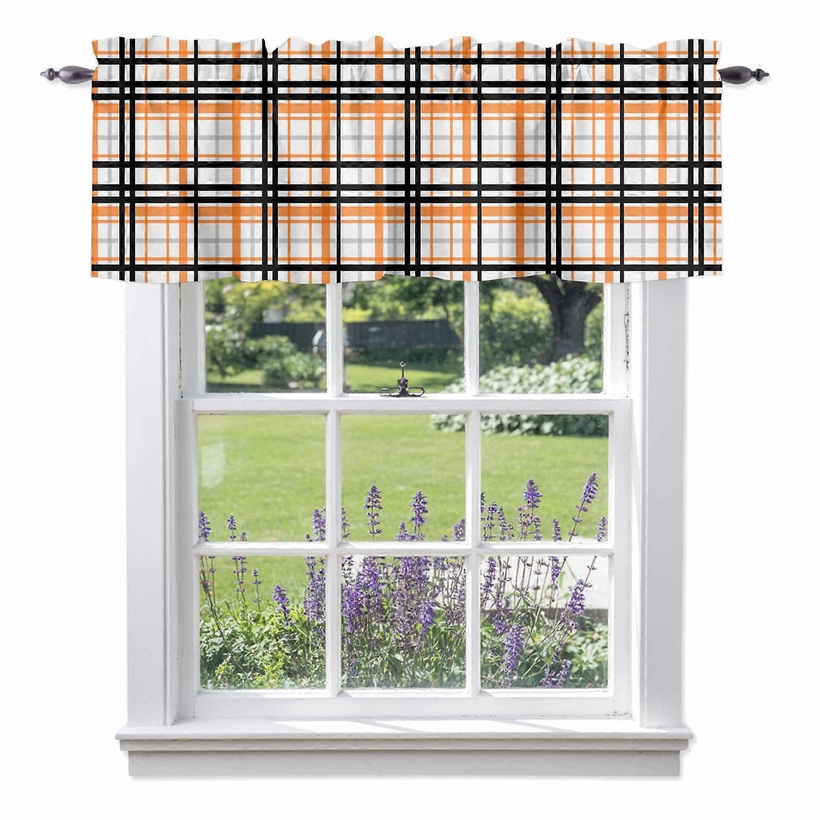 Orange & Black Stripe Plaid Valance, Rod Pocket, 54x18in, for Kitchen, Bedroom, Bathroom, Living Room – Farmhouse Abstract Geometric Decor