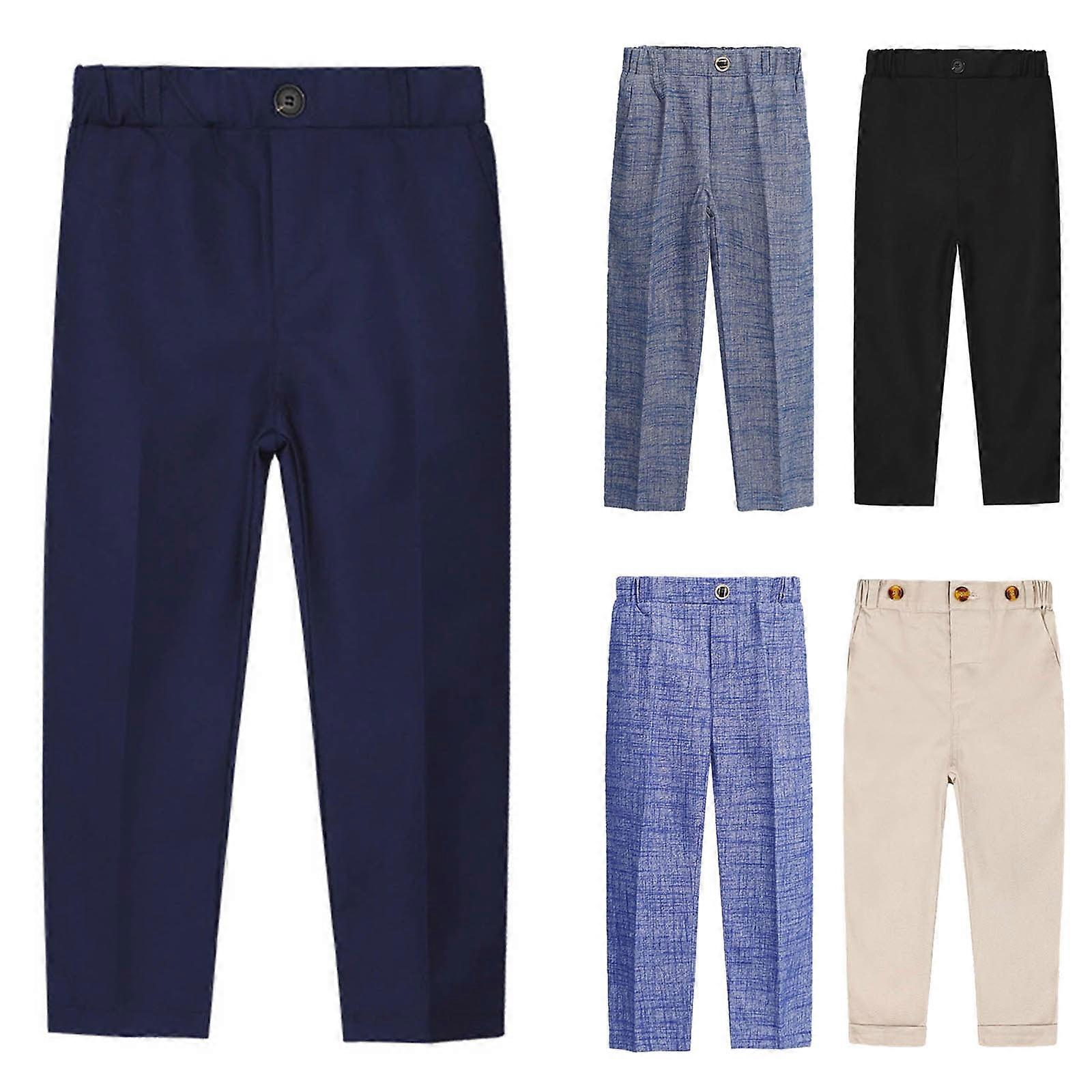 Fashion Boys School Uniform Pants Flat Front Trousers Kids Stripe Print Casual Pants Trousers, Sizes 18M-13T