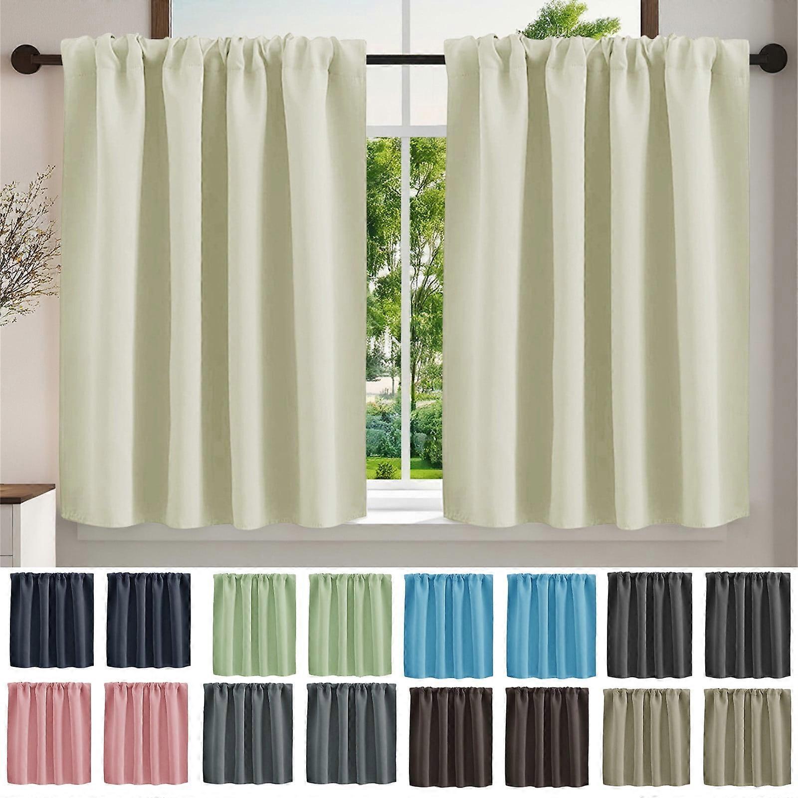Dark Gray Blackout Short Blinds, 76x92cm Rod Pocket Tier Curtains, 2-Piece Set for Small Windows, Bathroom & Kitchen – Light Blocking & Durable