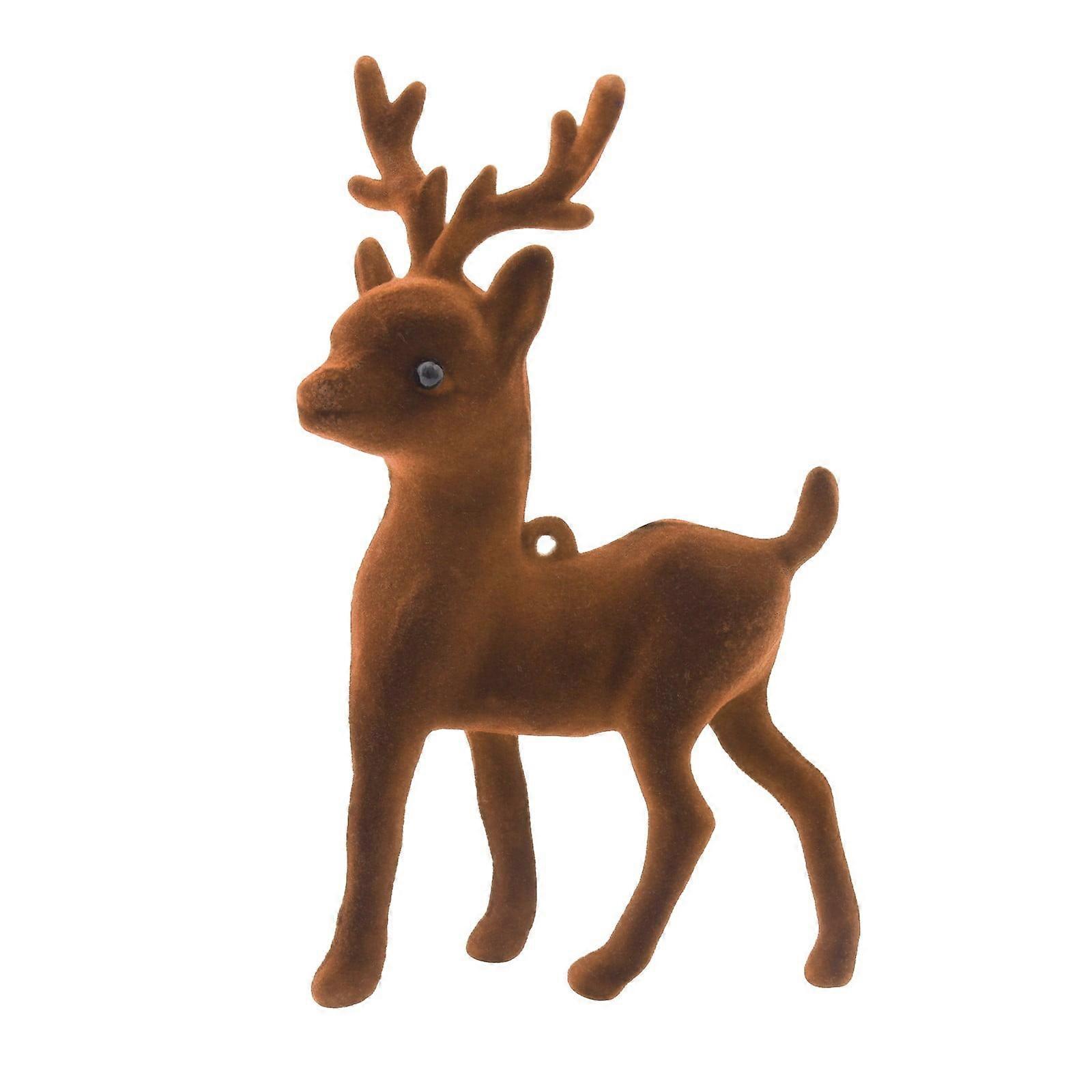 Miniature Deer Figurine Ornament, Soft Flocking Animal Model, Desktop Decoration for Home Office Shelf Nightstand (U)