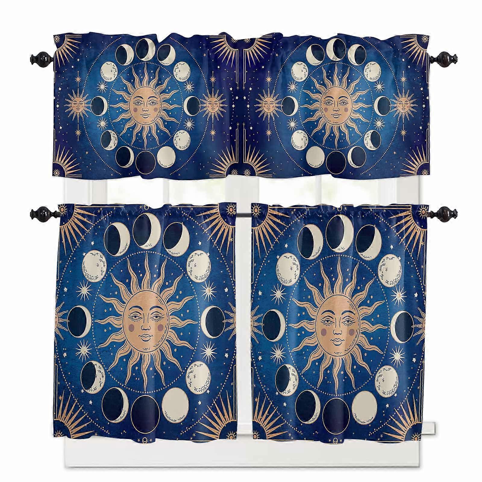 Sun Moon Kitchen Curtains & Valances Set, Starry Sky Tarot Rod Pocket 18" Valance, 27.5x36in, 3-Piece for Living Room/Bedroom
