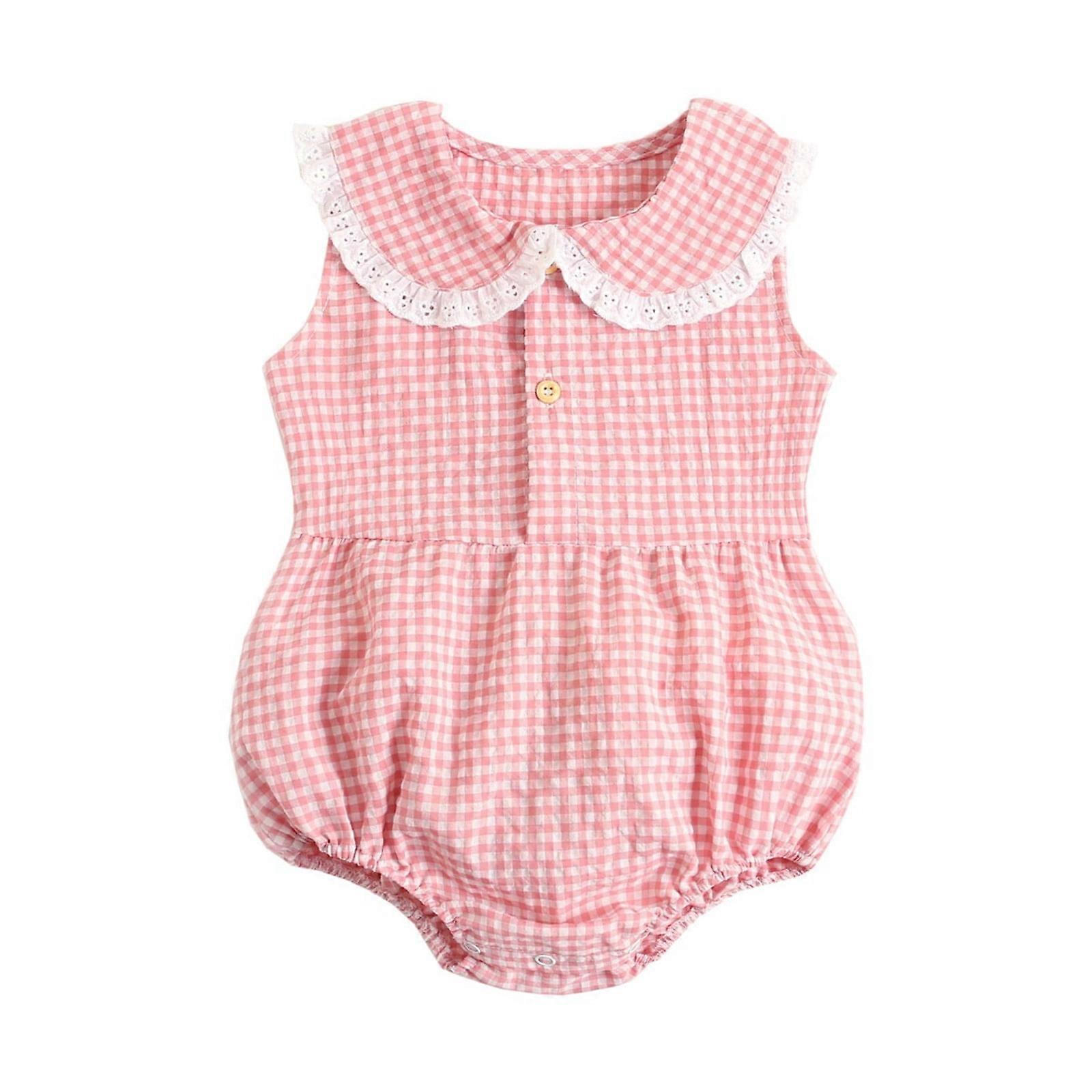Gender Neutral Baby Romper, Sleeveless Plaid Ruffles Bodysuit – Compatible with Newborns & Infants (Pink, 3Y)