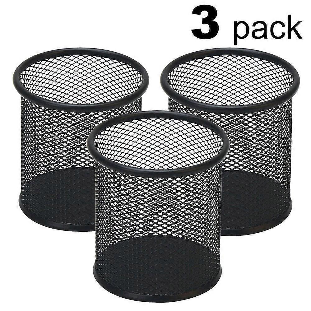 Pen Holder for Desk, Black Wire Mesh Pencil Cup Holder for Desk Office Pen Organizer, Gift (3 Pcs)