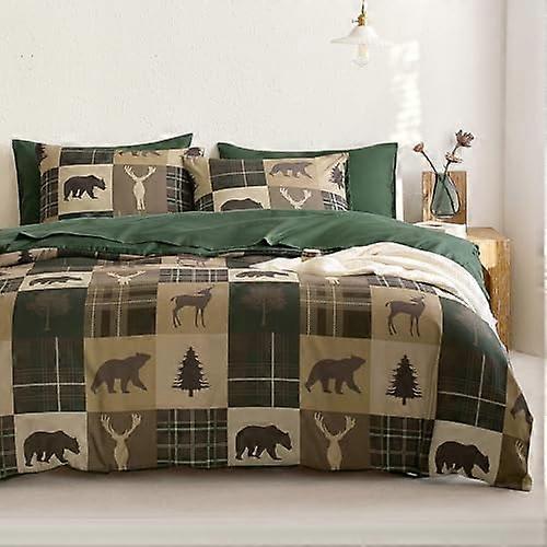 Rustic Duvet Cover Set – Cabin Christmas, Bear/Deer Theme, Soft Lightweight 3-Piece, Green/Brown, Queen, Compatible with Standard Beds