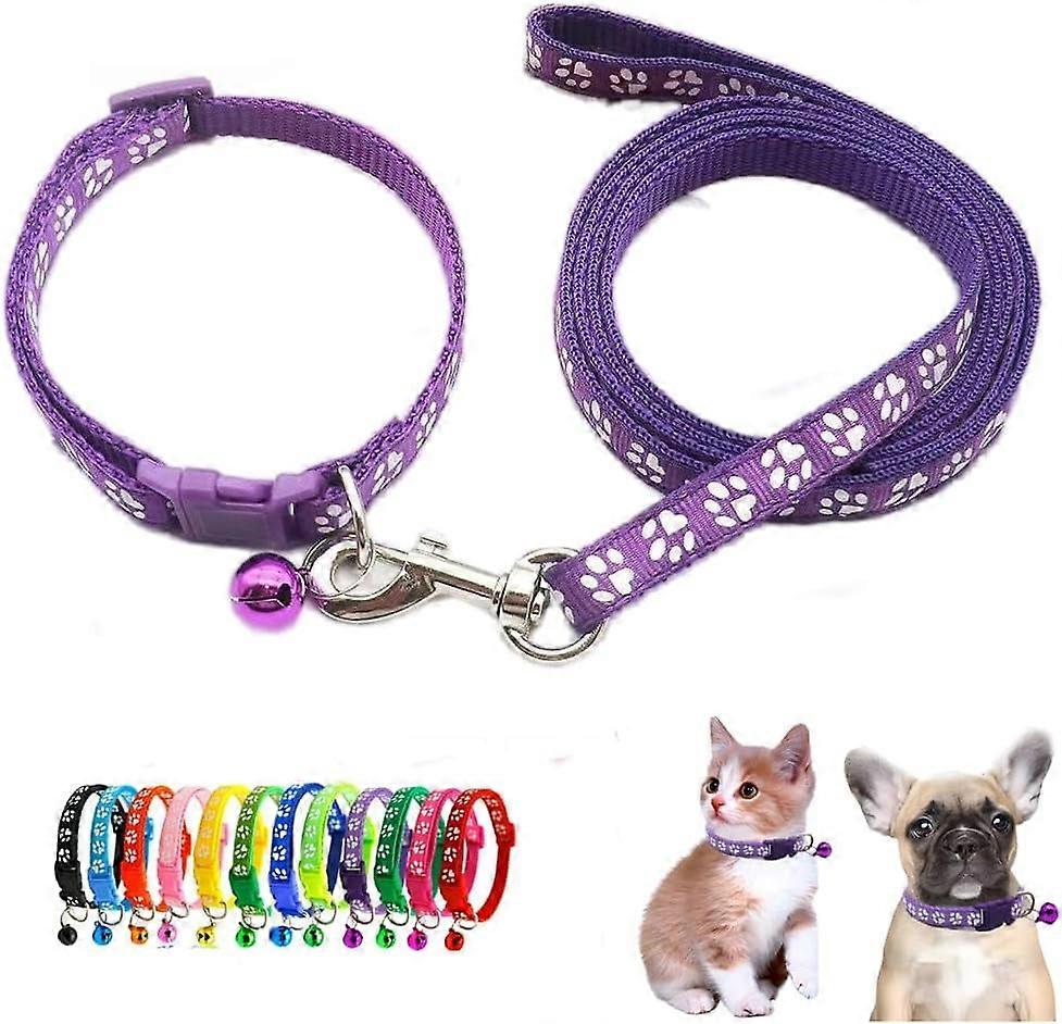 Dog Collar with Bell Leash Set,Nylon Basic Reflective Puppy Collars Girls Boys Paw Print for XXS Xs Small Cat Pet Animal Litter Tiny Kitten