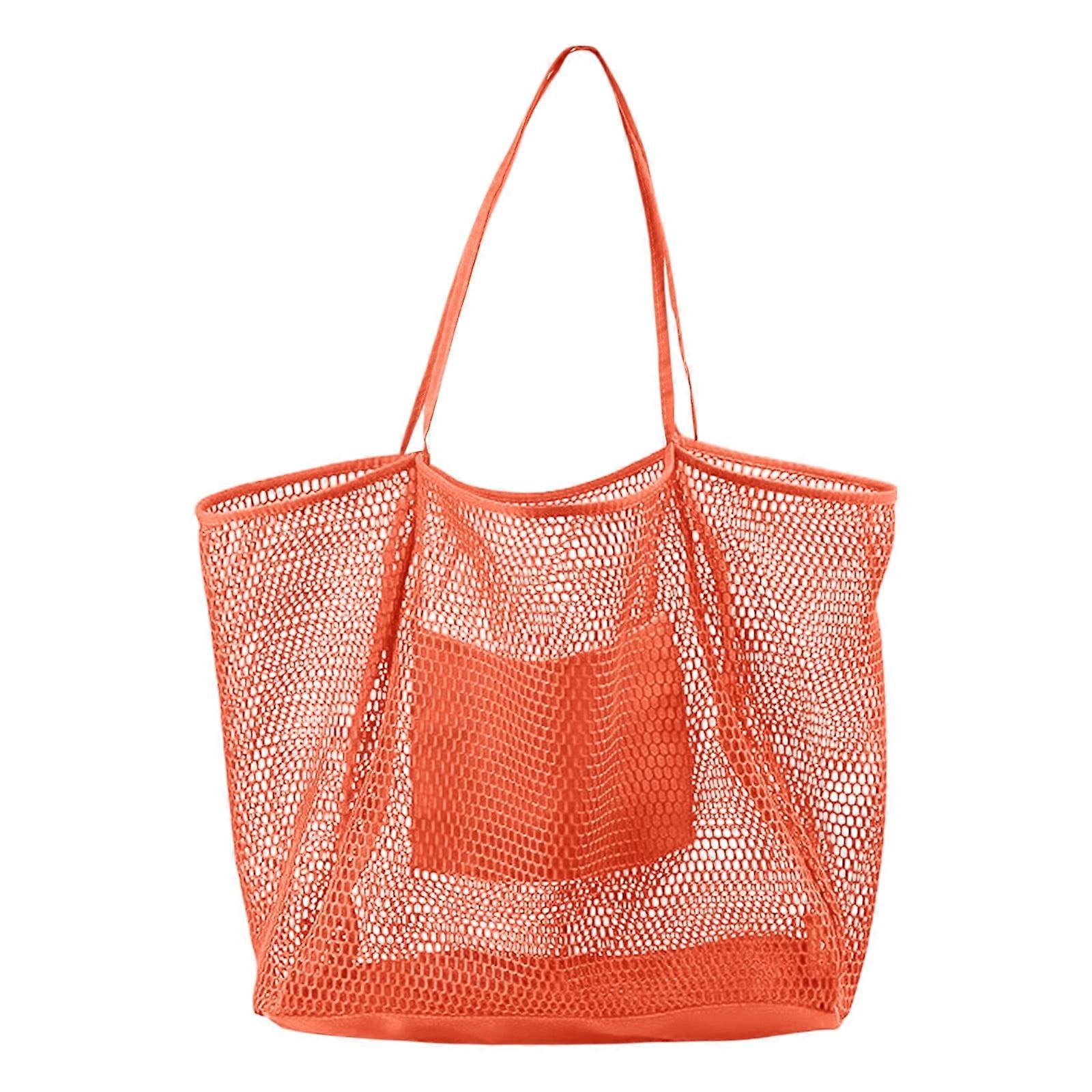This tote bag is made from high-quality mesh fabric that resists tearing and fraying over time The flexible structure accommodates a variety of items including towels books groceries and sports equipment The design is suitable for both indoor and outdoor use offering versatility for shopping trips picnics gym visits and more The reinforced stitching on the handles and seams adds extra strength to support heavier loads The lightweight construction makes the bag easy to carry and reduces overall bulk