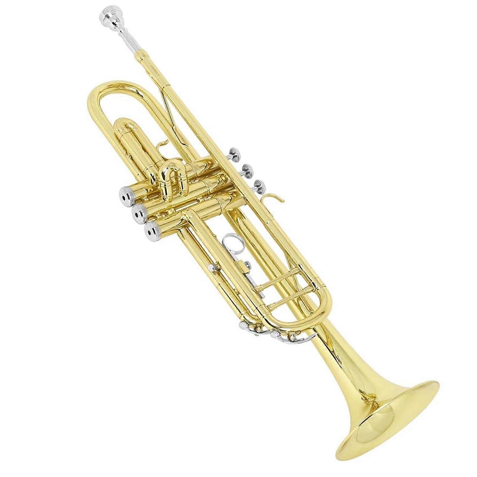 Beginner Bb Trumpet Brass with GoldPlated Finish, Bright Tone, Padded Case for Students