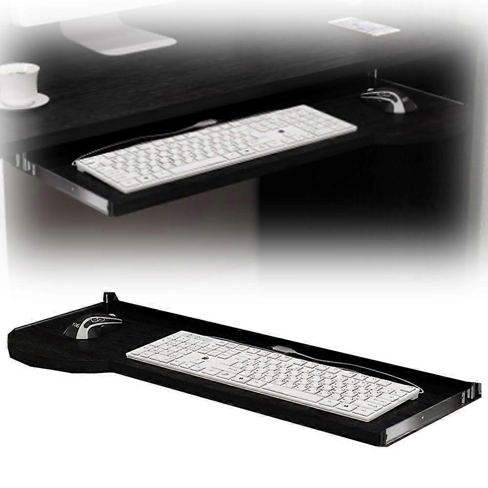 Adjustable Under Desk Keyboard Tray with Slide Rails, Ergonomic Desk Extender, Black 24x10in