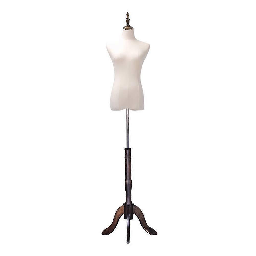 Female Dress Form Mannequin with Adjustable Height Linen Torso and Wooden Tripod Base