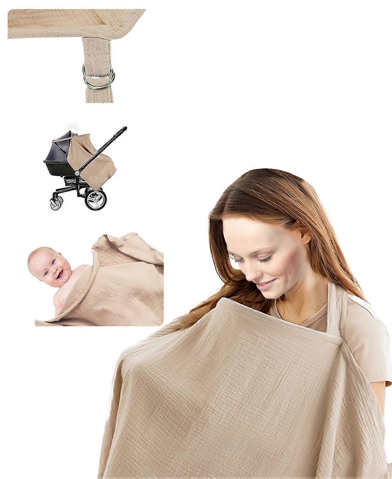 Muslin Nursing Cover with Rigid Hoop, Breathable Breastfeeding Cover, Multiuse Canopy in Wheat