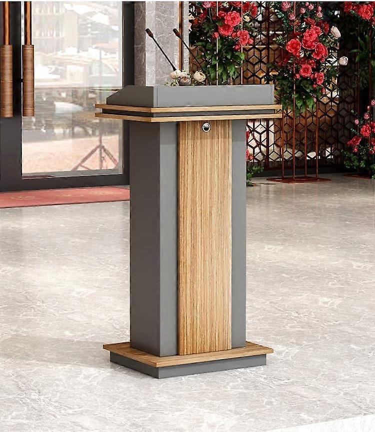 Modern Wooden Podium Lectern Stand with Waterproof Surface and Hidden Storage for Church and Classroom