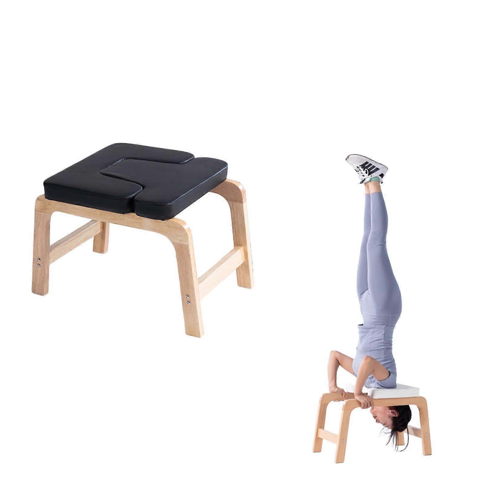 Headstand Bench Comfort and safety during inversions: leather surface with sponge padding minimizes shoulder strain and enables smooth, controlled transitions. Removable Tshaped pad for versatility: detachable mat can be used as a yoga brick or placed under the inversion stool for head support. The stool also doubles as a footrest or shoechanging stool for everyday use. Sturdy, durable construction: made from solid wood to maintain shape and provide reliable support, capable of handling up to 550 pounds. Versatile usage for yoga and fitness: ideal for exploring poses in your routine, including planks and handstands, and functions as a footstool or meditation seat for daily activities.