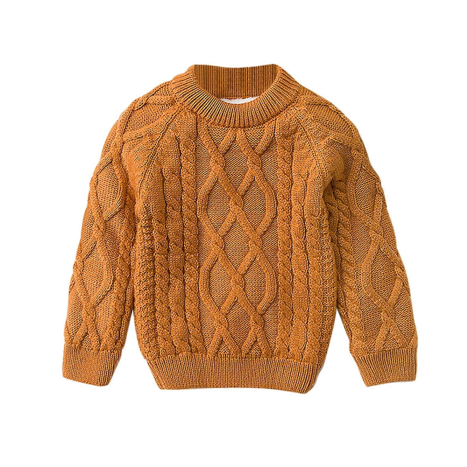 Toddler Baby Girls Boys Knit Sweater Solid Color Long Sleeved Crewneck Sweater Orange 12-18 Months