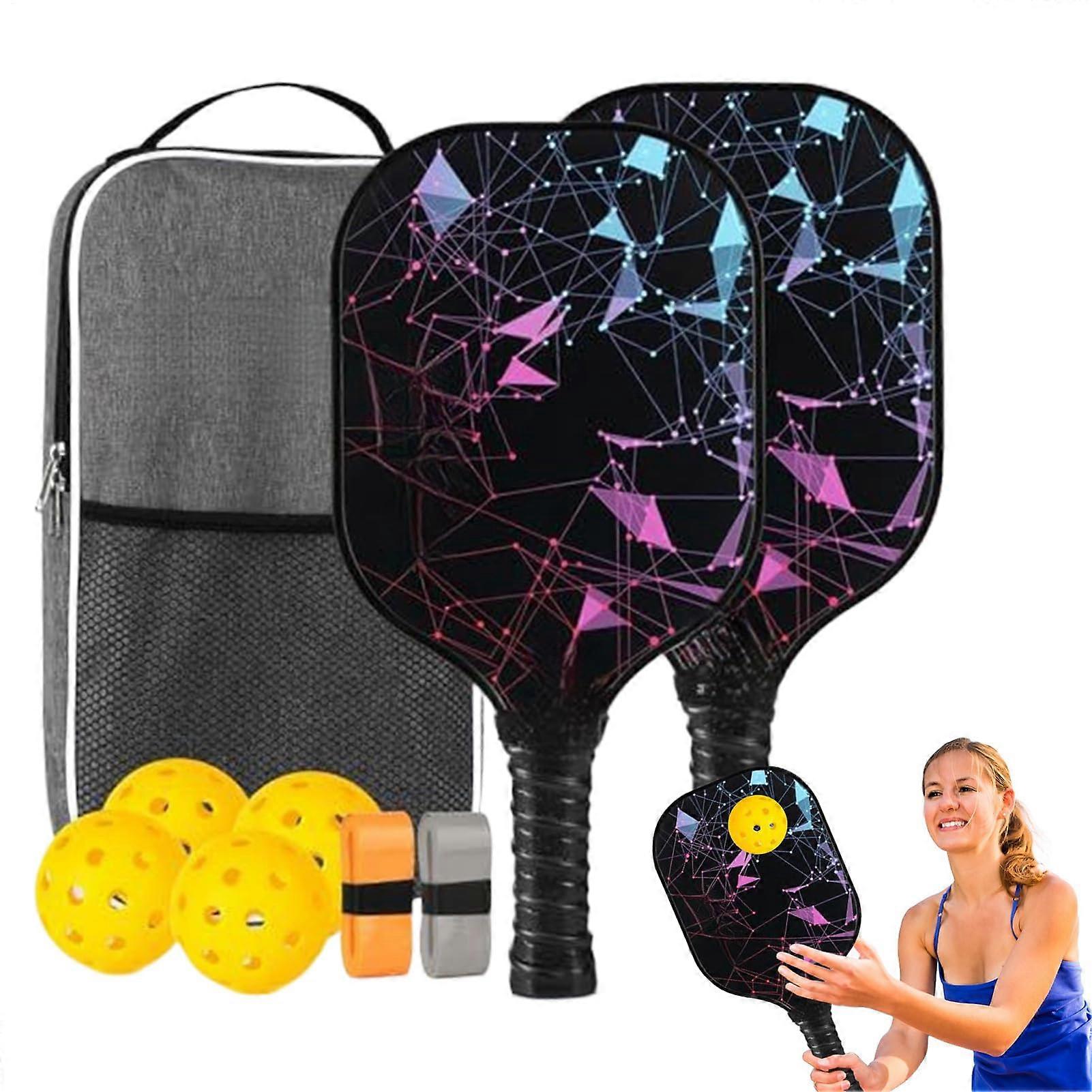 Pickleball Paddles Set with Fiberglass Rackets, Shock Absorption, Ergonomic Grip for Indoor Outdoor Play