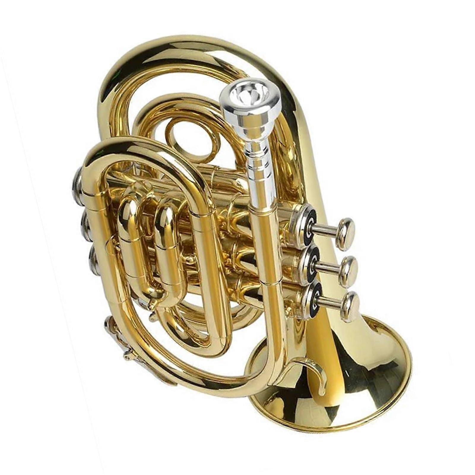 Pocket Trumpet Bb Key Gold Lacquer for Beginners, Durable Brass Compact Design with Bright Tone