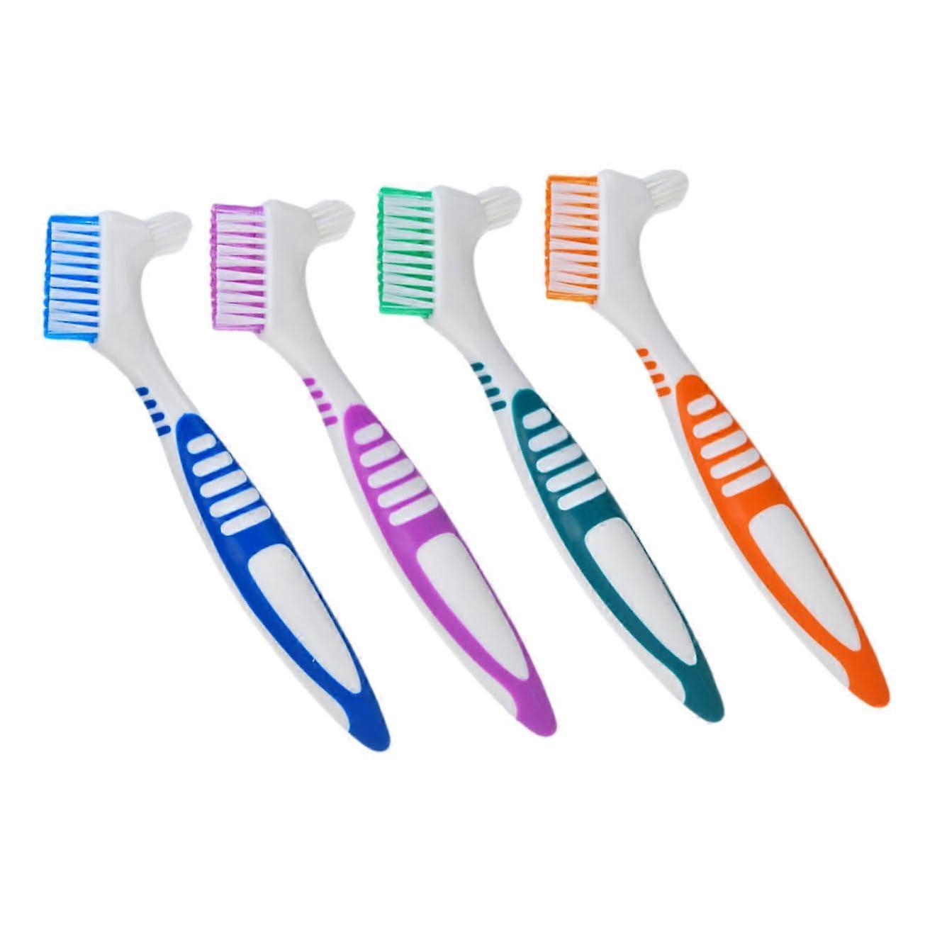 4Pcs Denture Cleaning Brush Set, Double Sided Soft Bristles, Ergonomic Non Slip Grip for Travel