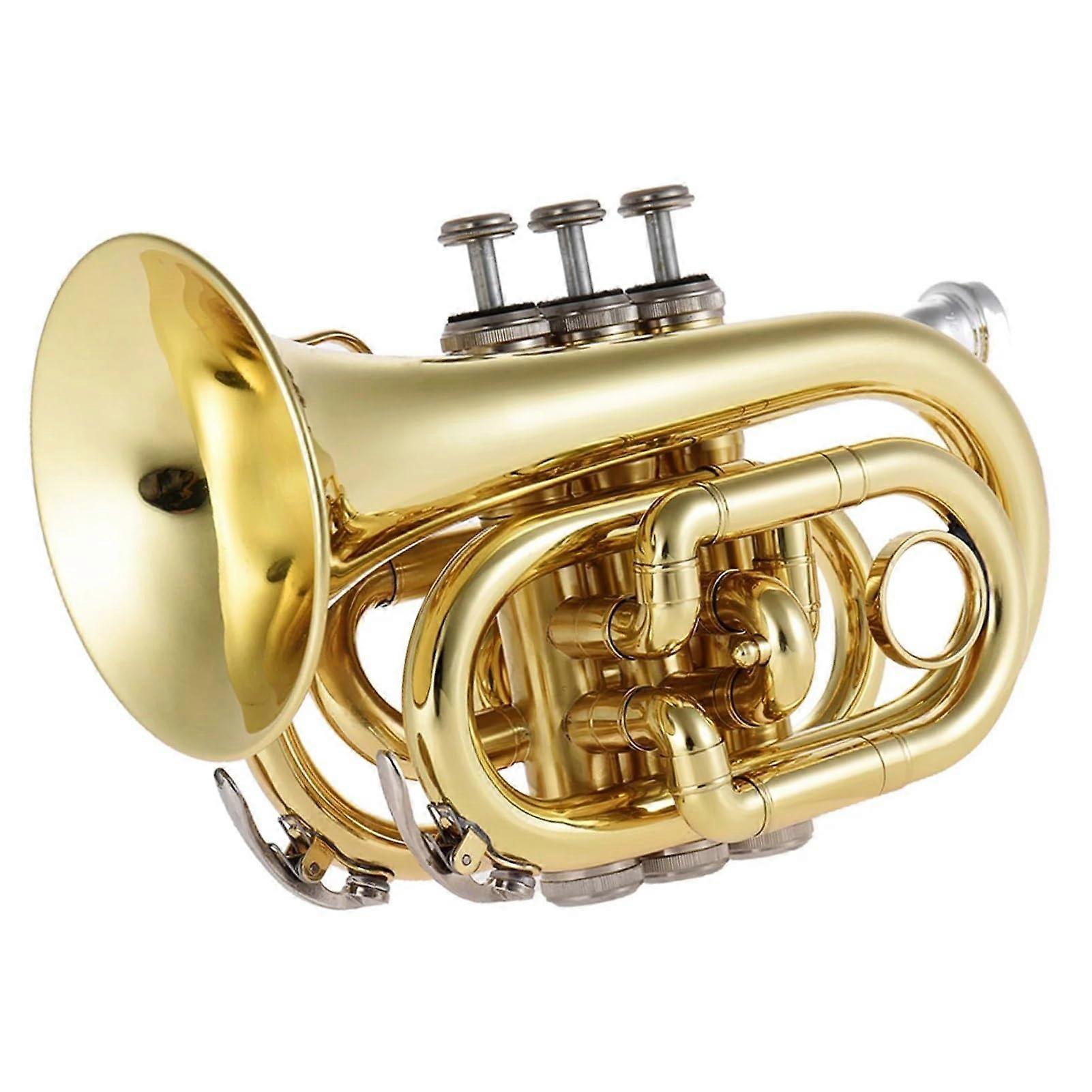 Bb Pocket Trumpet Compact Brass with Bright Clear Tone for Beginners and Travel