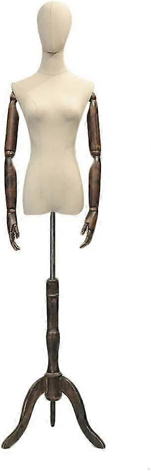 Small Adjustable Dress Form Mannequin with Linen Female Torso, Wooden Tripod Stand for Sewing and Display