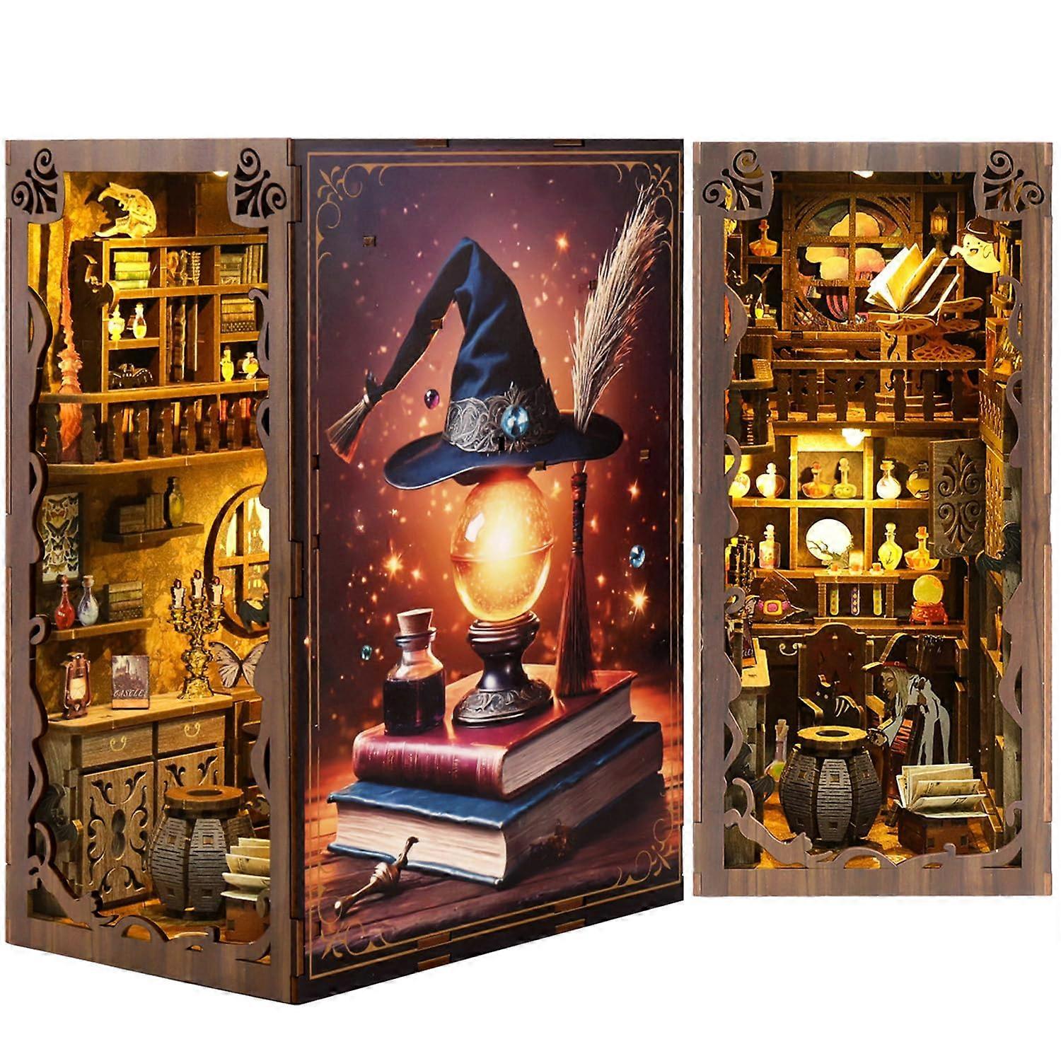 Book Nook Kit Magic Night 3D Wooden Puzzles for Adults DIY Miniature House with LED Light Bookshelf Insert Decor Gift