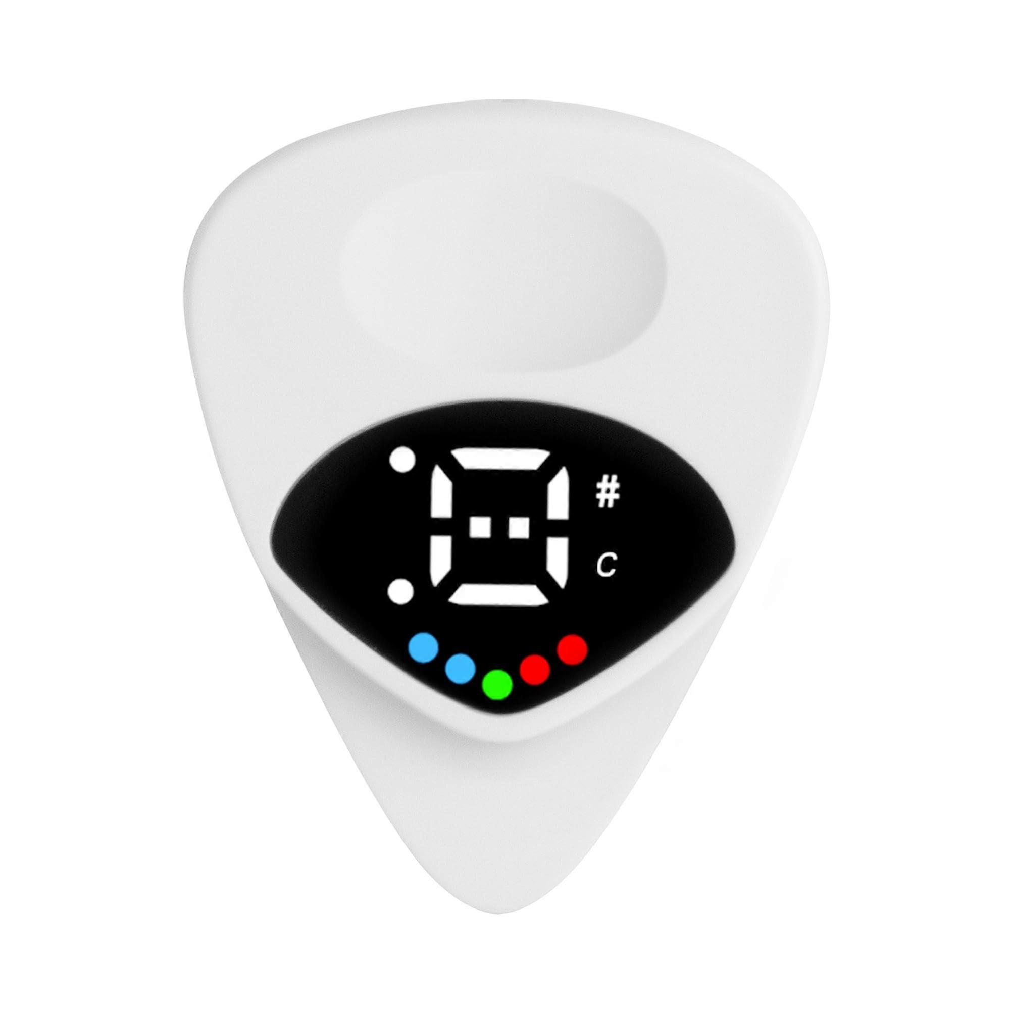 2 in 1 Digital Guitar Tuner Pick with LED Color Display, 12Tone Temperament Mode, White
