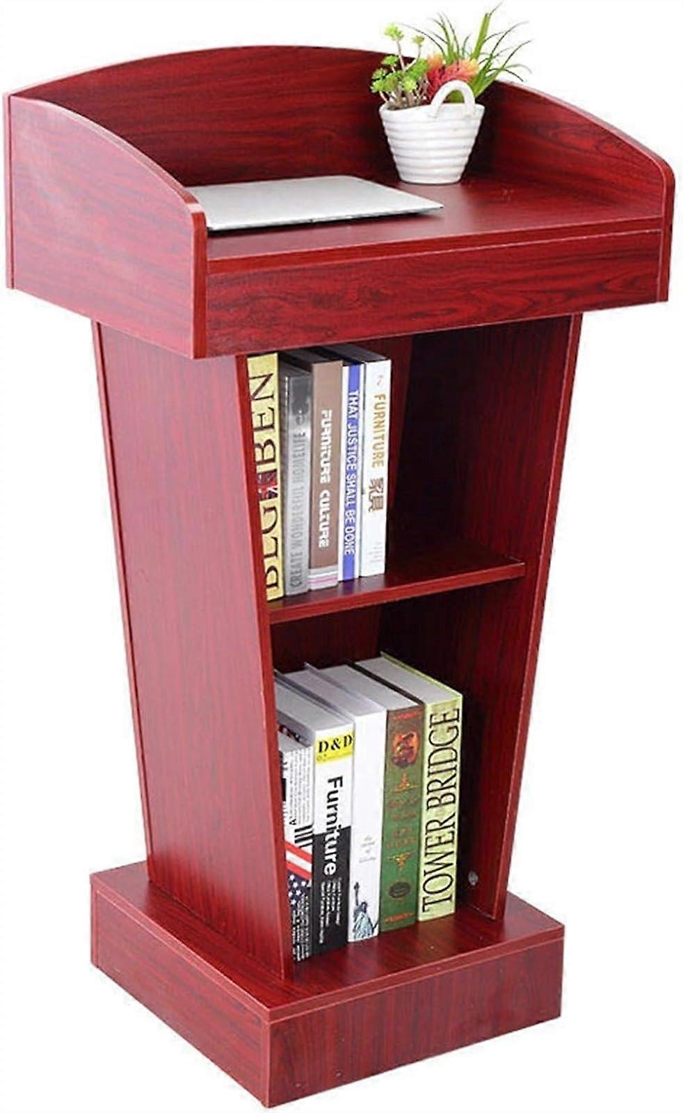 CHURCHES AND OTHER PLACES Luxury Lectern Floor Standing Lectern Church Pulpit with Raised Reading Surface Overview A striking, practical lectern designed for churches, classrooms, event spaces and reception areas. The raised reading surface and roomy shelf keep notes and devices organized while providing a clean, professional focal point. Key benefits Clear presentation surface: Raised reading area holds notes or books at an ergonomic angle for comfortable speaking. Ample space: surface fits microphones, mugs, glasses, Bibles, lab tables, tablets and other materials without crowding. Durable finish: Made from durable MDF wood with treated exposed surfaces to resist heat, moisture, stains and wear during regular use. Versatile placement: Works equally well as a church pulpit, wedding podium, presentation podium, hostess stand, cashier desk or standing reception desk. Easy setup: Designed for quick, one person assembly in under 15 minutes, with straightforward parts and hardware. Specifications Color: Red Size: 40 x 60 x 108 cm Material: Durable MDF wood, fully treated on exposed surfaces Package includes: 1 x Podium Practical use scenarios Church service: Use as a pulpit to hold a Bible, microphone and notes while maintaining an elegant front for the speaker. Corporate presentation or classroom: Place a laptop, tablet and printed materials on the lectern for clear, hands delivery. Event or reception area: Use as a welcome stand or hostess podium to sign in guests and display informational materials. Assembly and care Simple assembly with included hardware. One person can assemble in less than 15 minutes. Clean with a soft, damp cloth. Avoid abrasive cleaners to maintain the treated surface. Notes Manual measurement may have a normal error of about 1 to 3 cm. Actual color may vary from images due to display differences. Please use the physical product as the reference.