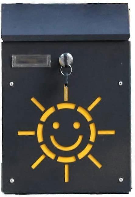 Locking Wall Mount Mailbox with Key Drop Slot, Weatherproof Galvanized Steel, Medium Capacity, Sun Pattern Design