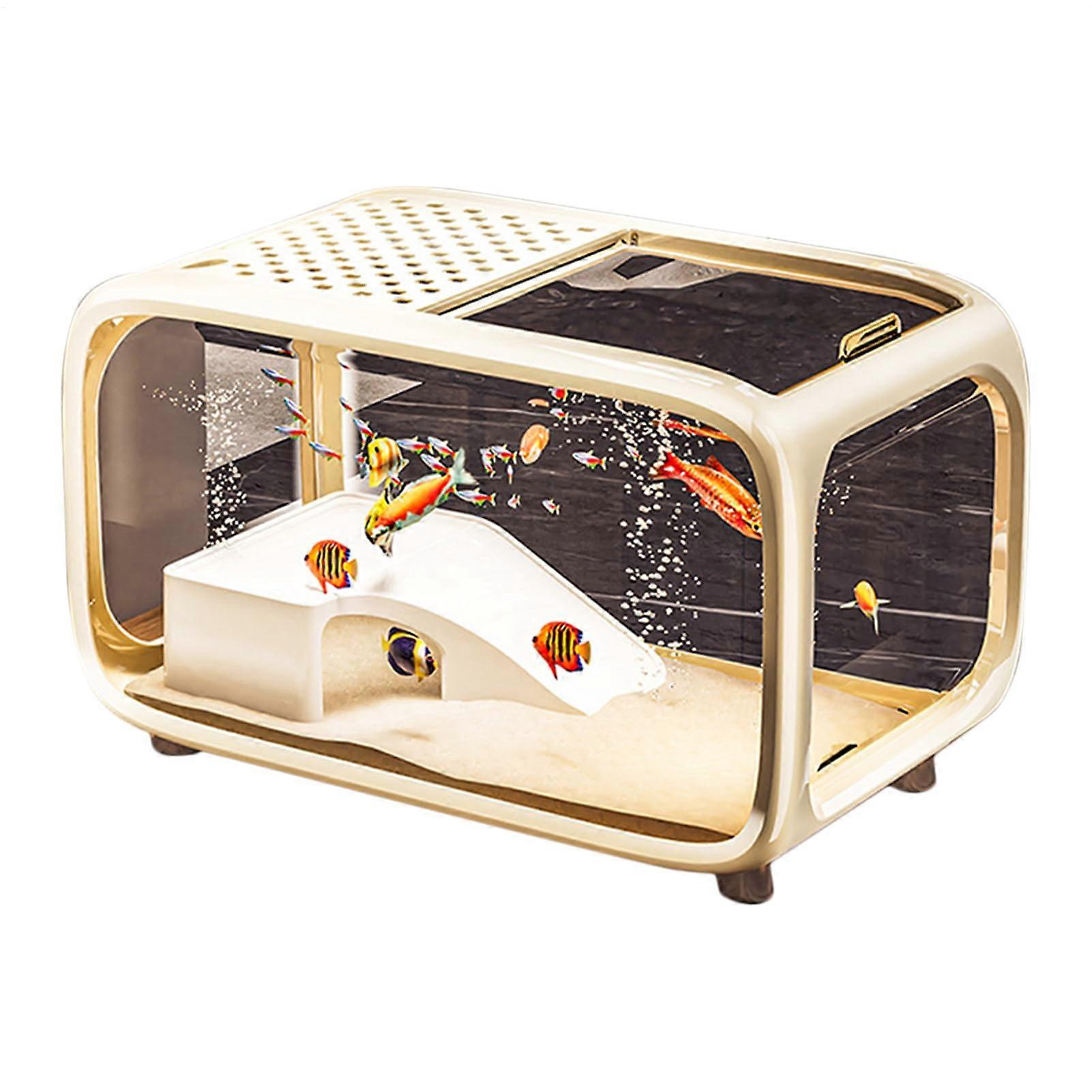 Small Turtle Tank Clear Acrylic Desktop Aquarium with Climbing Decor for Betta Snails Shrimp