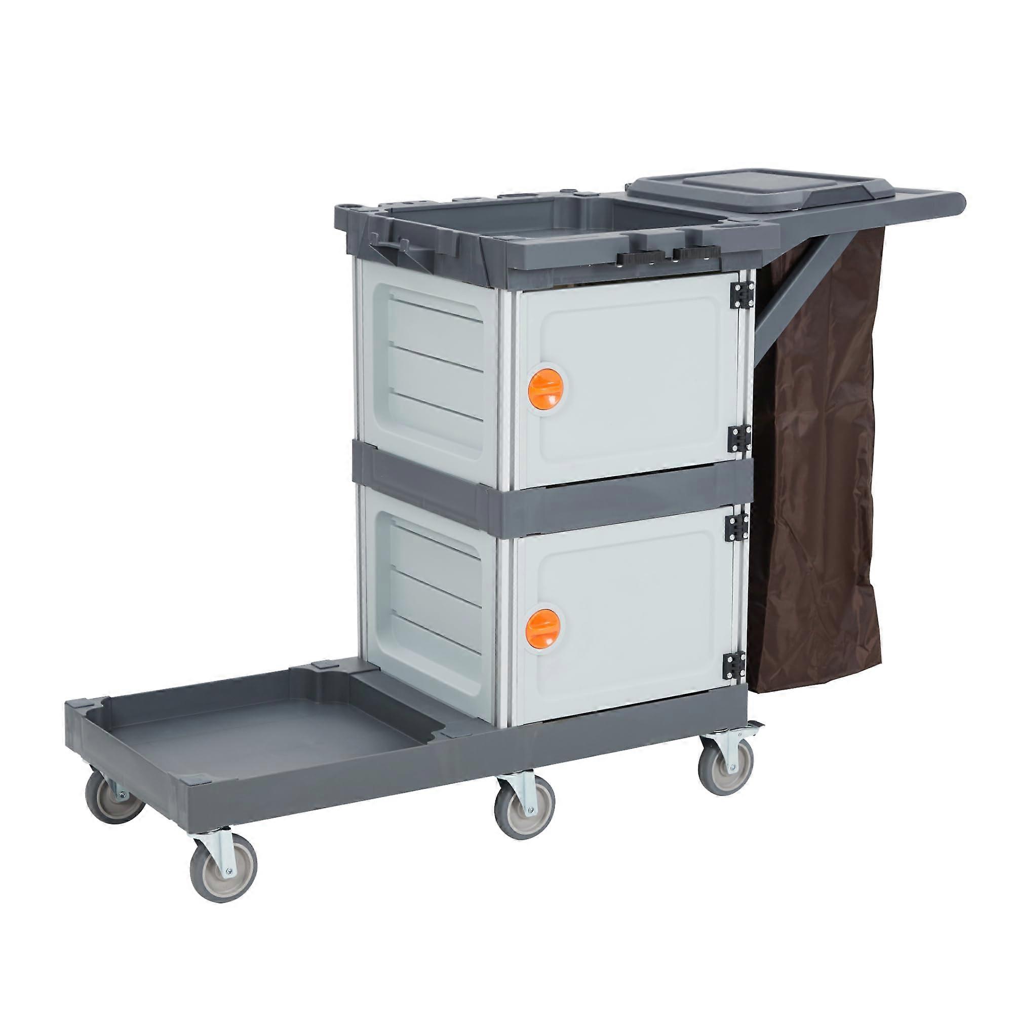 Janitorial Cleaning Cart with Lockable Cabinets, Oxford Bag, Hooks and Smooth Rolling Wheels