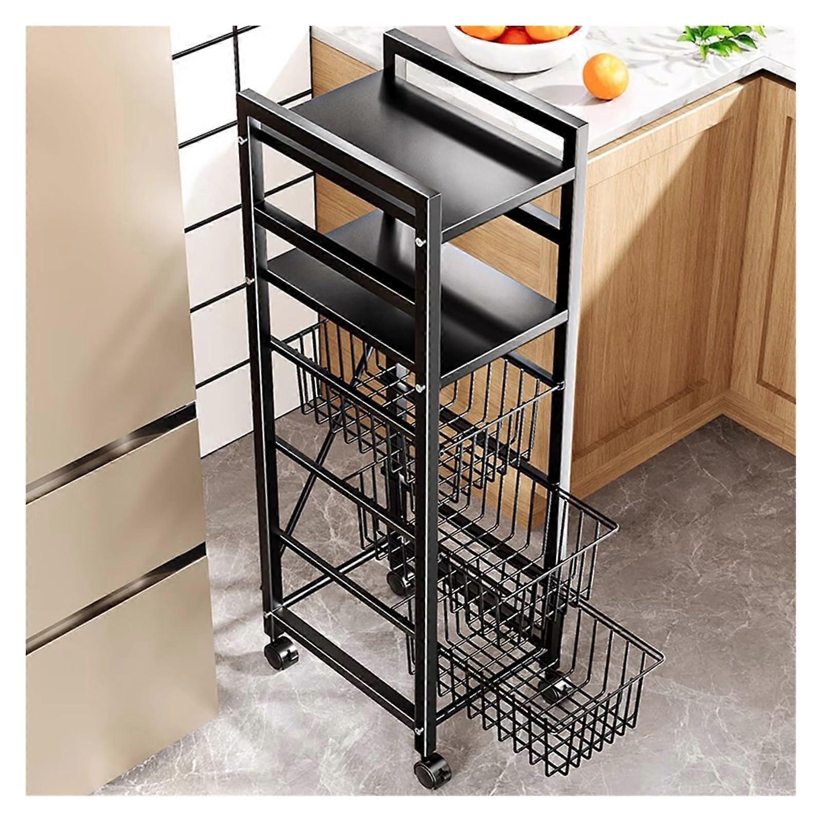 Size 32cm. Color black. Compact three tier rolling storage cart designed to save floor space while providing generous storage capacity. Ideal for narrow gaps and small rooms. Key benefits Maximizes limited space with a slim 32cm footprint and three deep tiers for organized storage. Moves easily where you need it. Four 360 degree casters provide smooth mobility and two lockable casters secure the cart in place. Built for durability. Constructed from carbon steel with a smooth powder coated finish for long lasting use and resistance to everyday wear. Keeps items secure while moving. Raised edges on each tier prevent items from falling off during transport. Versatile function across the home and workspace. Use it where fixed shelving is impractical. Main features Three tier storage layout for sorting supplies and frequently used items. Easy grip handles for comfortable pushing and pulling. Four rolling casters including two locks for stability when parked. Sturdy carbon steel frame with powder coated surface in black. Size 32cm makes it suitable for tight or narrow spaces. Practical use scenarios Laundry room. Store detergent, fabric softener, stain removers and cleaning tools between washer and dryer for quick access. Bathroom. Organize toiletries, towels and cleaning supplies in a narrow gap beside a vanity or bathtub. Kitchen or pantry. Hold spice jars, oils, utensils and small appliances on a mobile cart that can be rolled to a workstation when needed. Office or craft area. Keep paper, art supplies and tools organized and easy to transport. Why customers choose this cart Efficient space saving design for small rooms and tight spaces. Reliable construction for daily use. Smooth mobility combined with locking casters for secure placement. Neutral black finish blends with common decors. Product specifications Size 32cm. Color black. Material carbon steel with powder coated finish. Three tiers, four 360 degree casters, two lockable casters. This rolling storage cart offers a practical, durable, and space efficient solution for organizing small areas throughout the home and office.