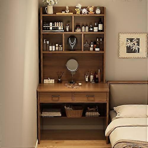 Walnut Computer Desk with Shelves and Drawers, Wooden Workstation with Keyboard Shelf for Home Office, 80x50x180cm