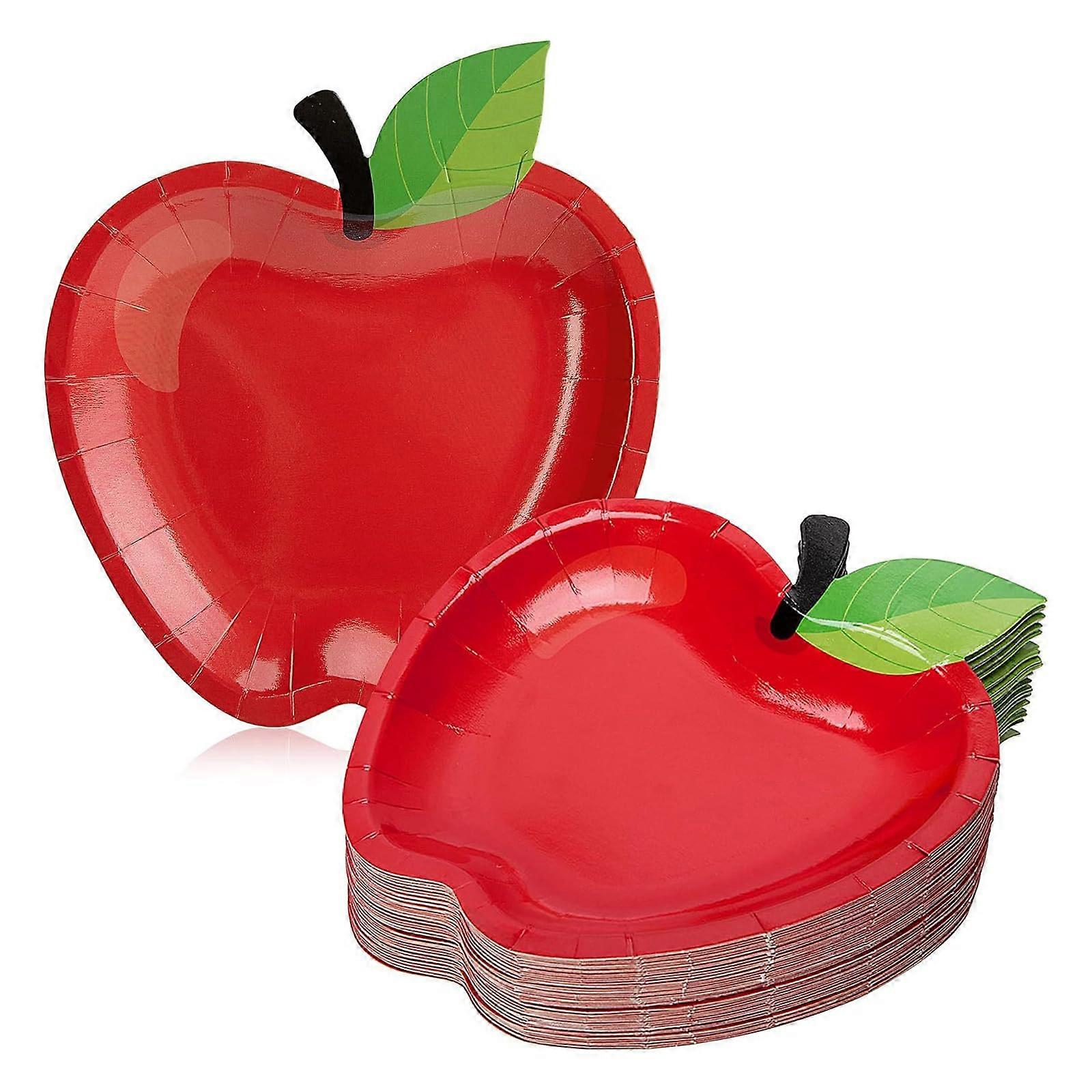 50Pcs Red Apple Shaped Party Plates 18.5x16.5cm Back to School Disposable Dinnerware