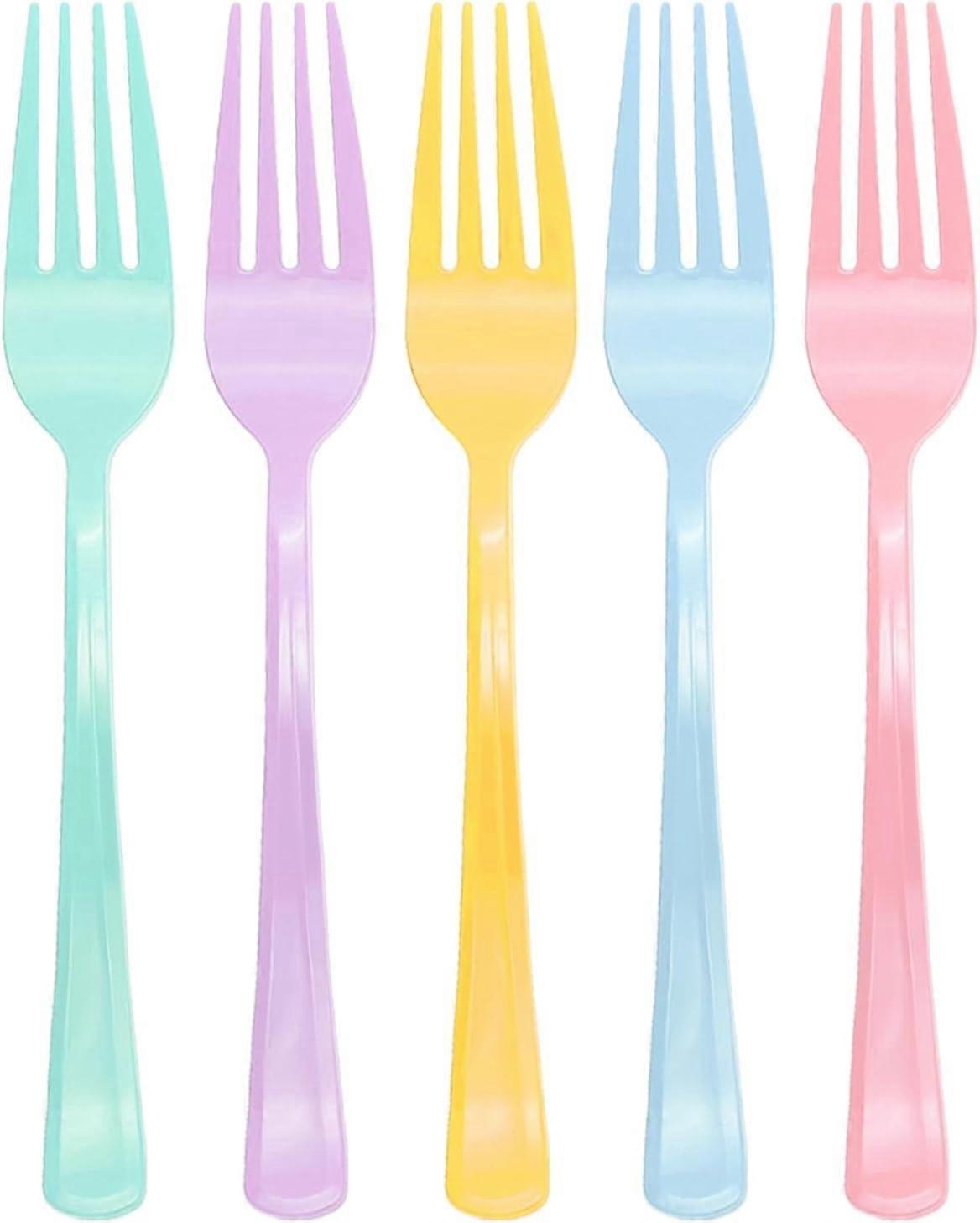 100 Pcs Pastel Plastic Forks – Heavy Duty Disposable Cutlery Set for Birthday, Wedding, Tea & Garden Parties