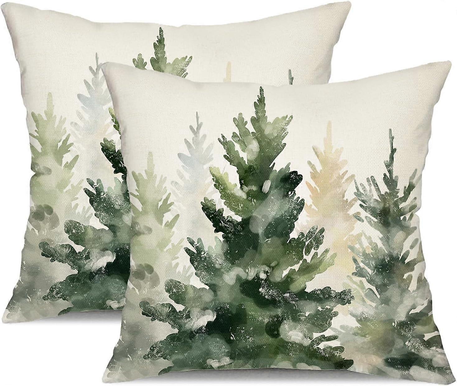 Christmas Pillow Covers 18x18", Set of 2, Watercolor Blue/Green Tree Design, White Throw Covers for Couch – Compatible with Standard Inserts